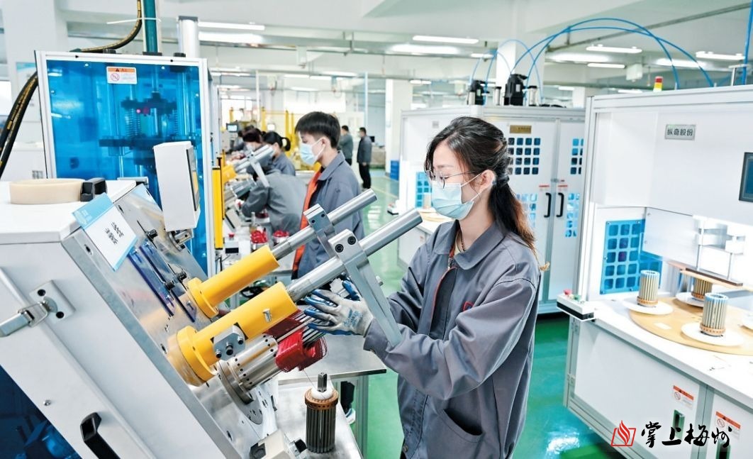广东庆达科技股份有限公司技术先进的智能电机生产车间一角。(钟小丰 摄)