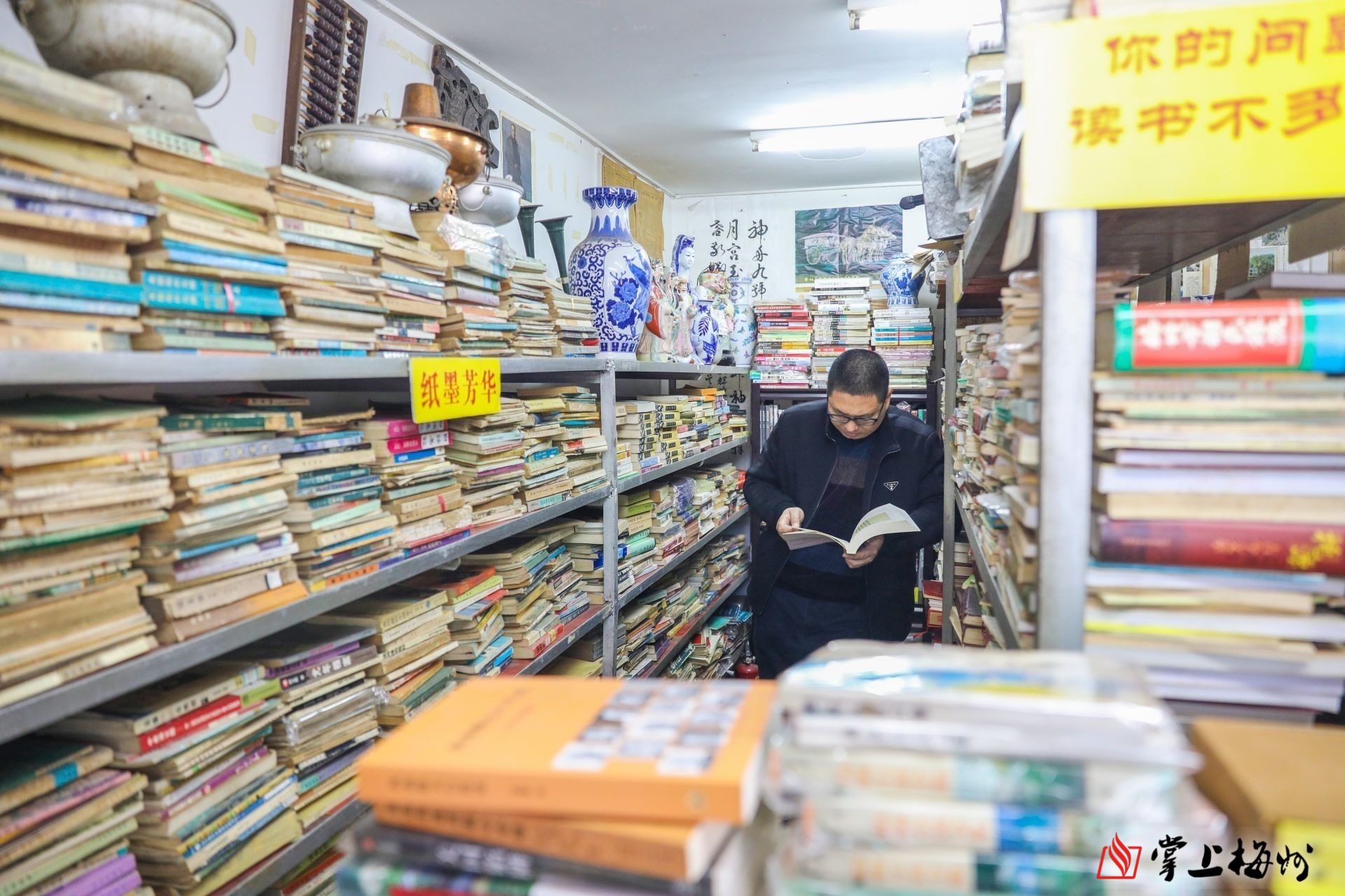 在梅城的充满民国风韵的骑楼老街,有一家并不起眼且面积区区不过50平方米的小店铺隐于闹市,店内书架上琳琅满目地陈列着客家地方文献史料、红色文献、侨批信札、老字画、老报纸、老连环画······80后的年轻店主江伟森用“以藏养藏、以书会友”的独特方式经营着自己的旧书书店,默默坚守至今不觉已有十一个春秋。