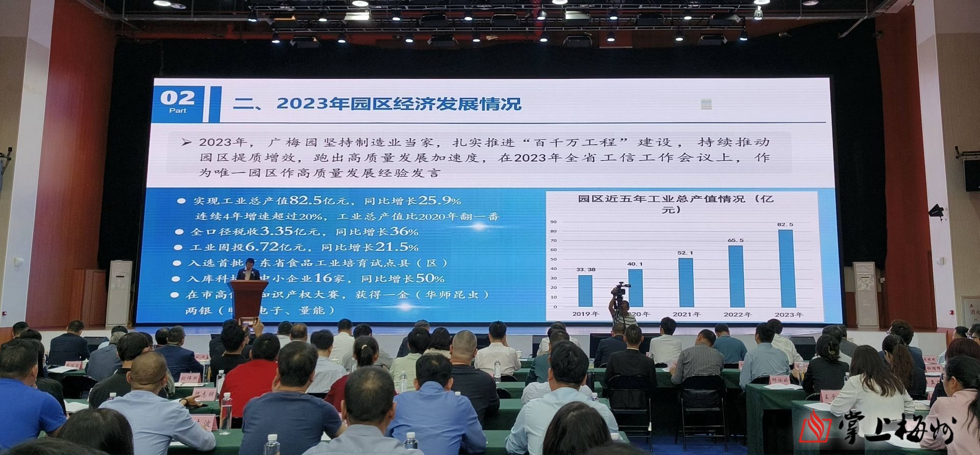 会议传达了省、市高质量发展大会精神,通报了2023年园区经济发展情况及2024年工作计划。园区分管领导以及广东龙宇、梅州珠江啤酒、金柚康、广东科伦、梅州承达等企业代表分别作表态发言。