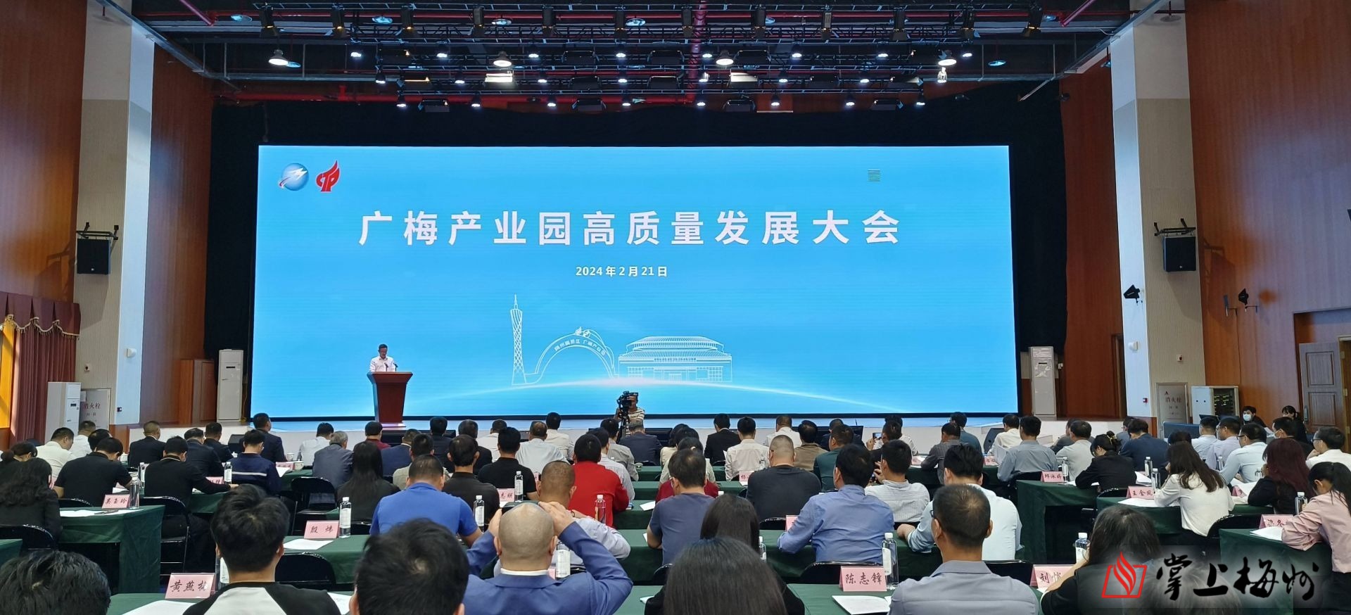 掌上梅州讯 2月21日下午,广梅产业园高质量发展大会在广梅产业园绿创中心召开。会议深入贯彻党的二十大精神和习近平总书记视察广东重要讲话、重要指示精神,一体贯彻落实省委全会、市委全会以及省、市高质量发展大会精神,进一步击鼓催征、加油鼓劲,动员园区上下锚定高质量发展首要任务,坚持实体经济为本、制造业当家,加快发展新质生产力,凝心聚力创建国家高新区、共建百亿园区,奋力推动园区高质量发展。