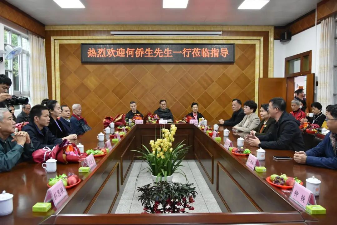 在座谈会上,领导嘉宾们先通过观看视频,回顾了何侨生先生热心家乡公益事业的善行善举,在座人员无不深受感动和激励。钟铁向领导嘉宾介绍了黄金中学的办学情况以及下一步规划建设情况。他表示,黄金中学将珍惜侨领厚爱,牢记侨生情怀,强化感恩教育,传承侨生精神。这种精神将鼓励更多的乡贤校友支持家乡建设。乡贤谢小章先生就是被何侨生先生回报家乡的大爱所感动,慷慨捐资1480万元成立黄金中学“金秋-谢小章优秀师生奖励金”,有力助推了黄金教育事业的大发展。随后,廖月芝代表县委、县政府对何侨生先生多年来一直关心支持家乡建设表达衷心的感谢和诚挚的问候,并介绍了丰顺县经济社会发展情况。她细数了近年来丰顺县在产业发展、基础建设、社会治理等方面所取得的成绩,希望以何侨生先生为代表的侨胞们能够汇聚各方资源,与家乡发展紧密结合起来,为丰顺县发展问诊把脉、建言献策,合力画好高质量发展的最大“同心圆”。