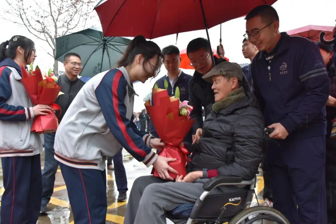 9日下午,何侨生先生一行在黄金中学党总支书记钟铁、校长彭恩铁的陪同下走进黄金中学校园,受到全校师生的热烈欢迎。同学们挥动国旗,热情鼓掌,高呼“何爷爷,您好!”“欢迎何爷爷回校!”同学们把最美的鲜花献给最敬爱的何爷爷,用最热烈的掌声欢迎最可亲的何爷爷。何侨生先生的到来让整个校园洋溢着一派喜庆气氛。