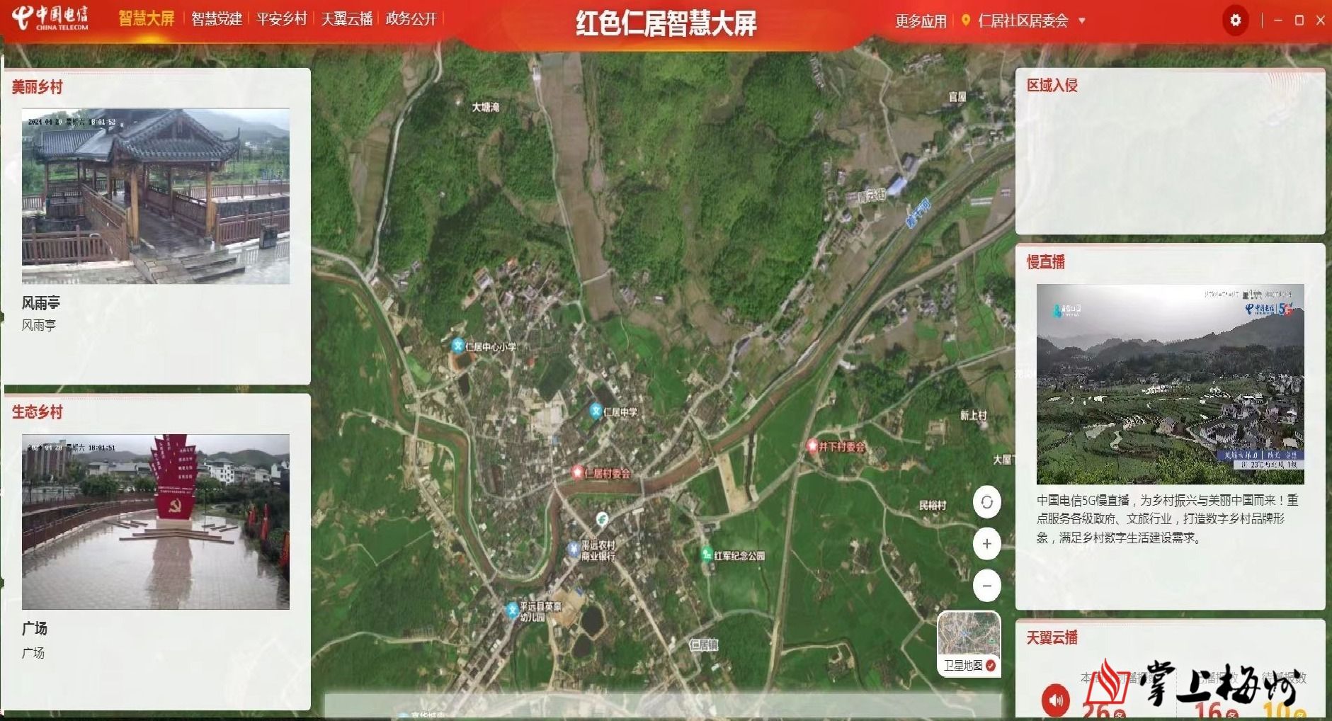 走进文旅服务中心大厅,迎面而来的是安装在中央的智慧大屏,上面正轮番播放着仁居古镇各红色景点的实时画面,有远眺也有近景,画面流畅而清晰。笔者虽身未到,心已远,恨不得立即飞到景点里感受红色古镇的魅力和革命气息。