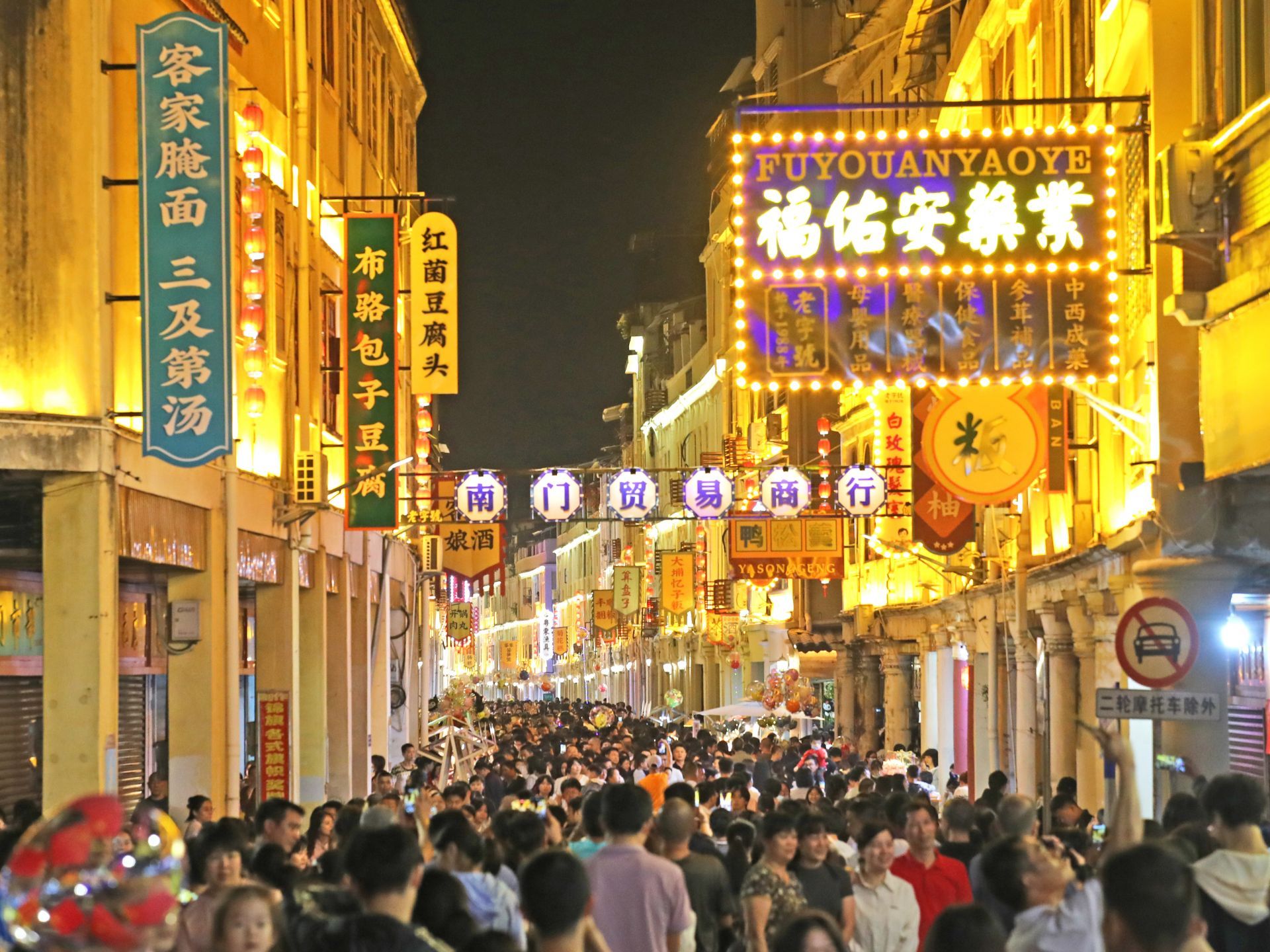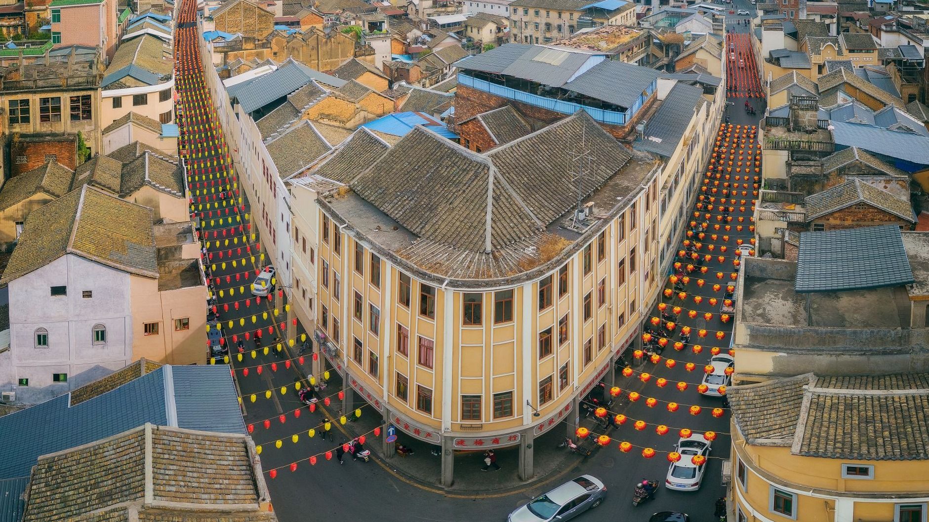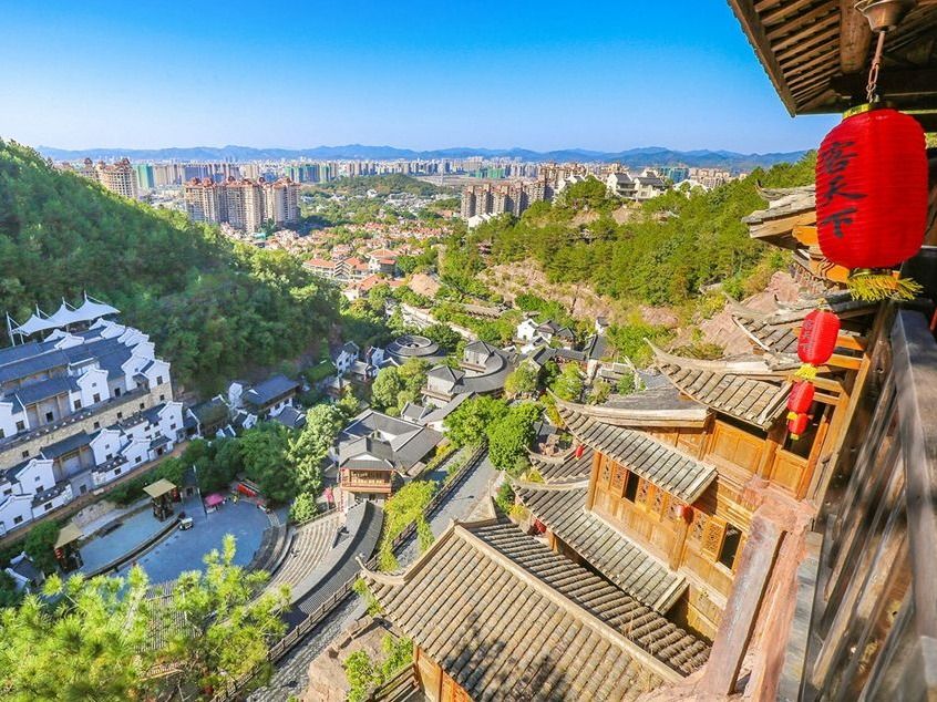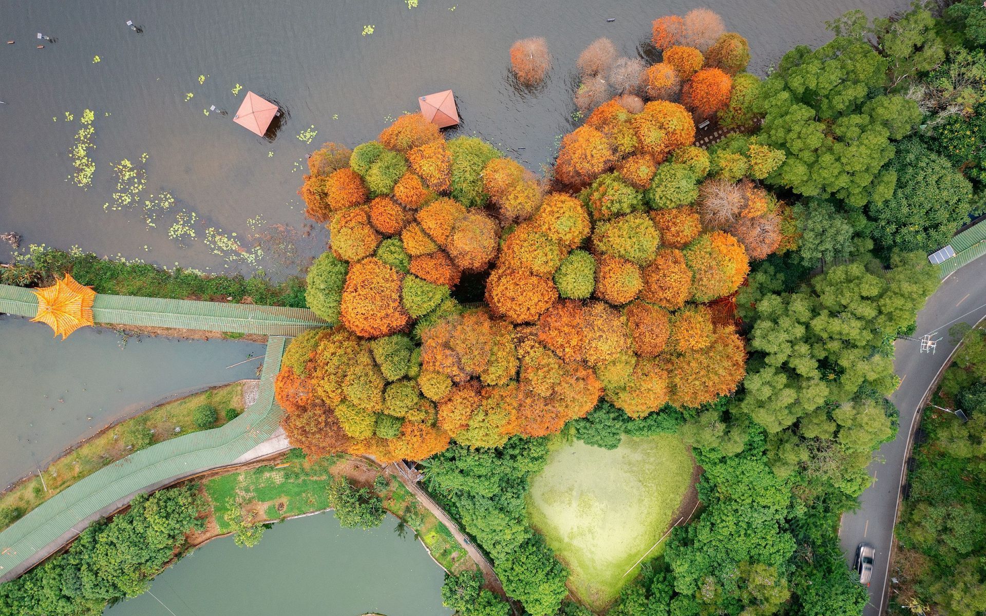 “山光水色滟滟涵碧,梅江秀区欣欣向荣”