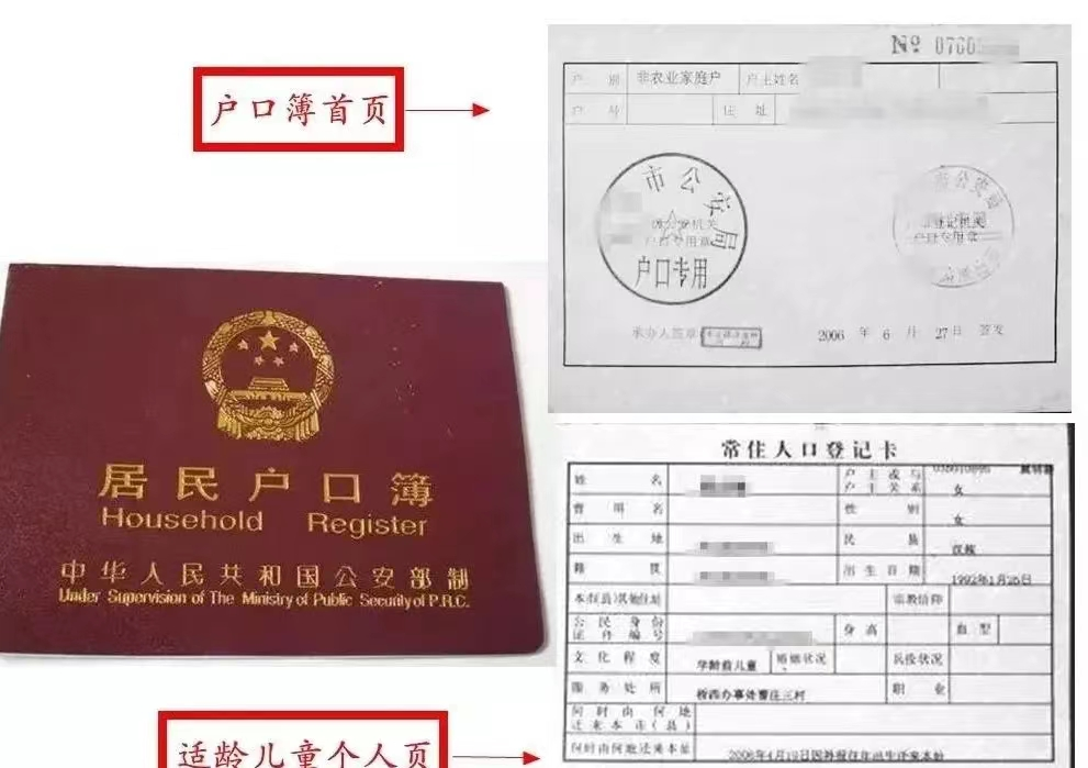 • 户口本(验原件,收户主页和适龄儿童页复印件,复印在同一张A4纸上);