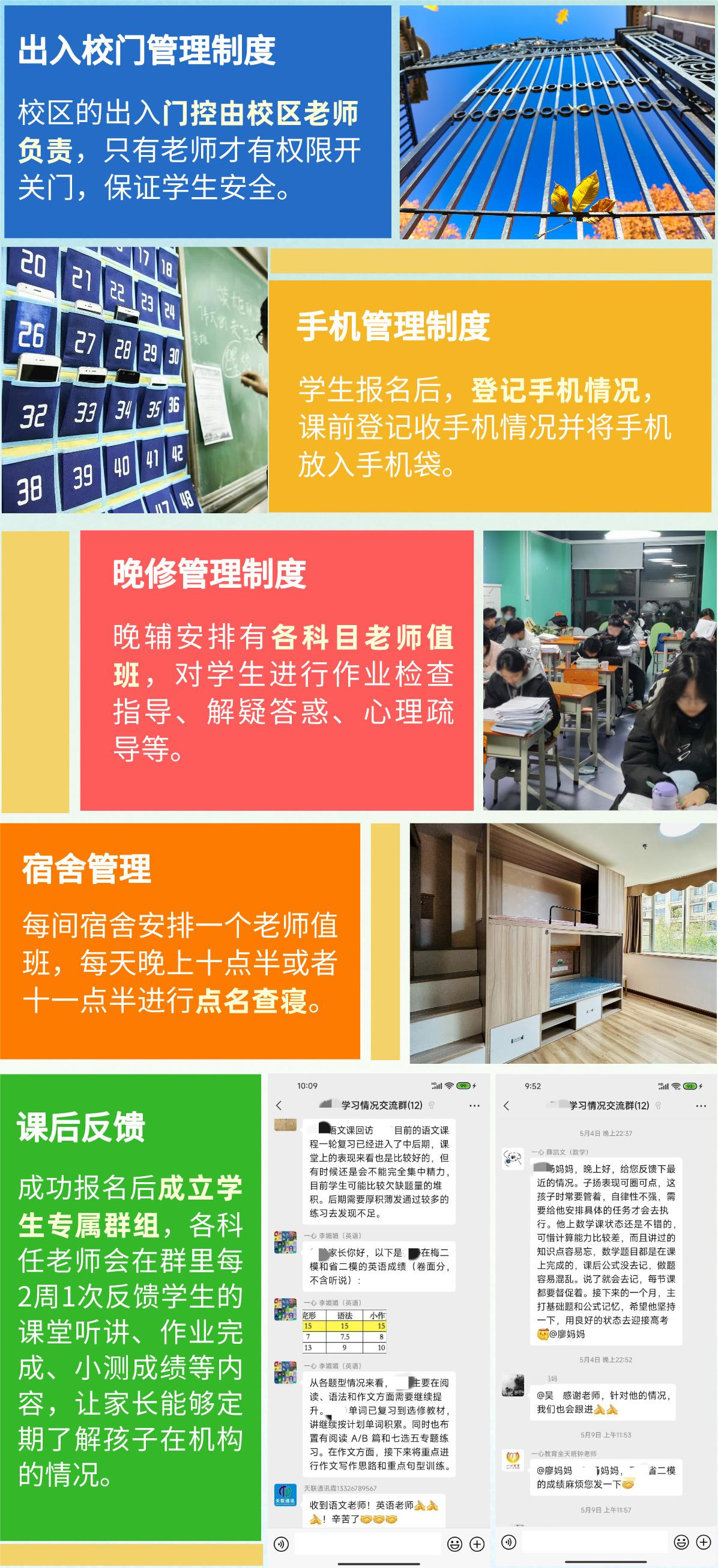 在学员管理方面,一心全日制集训以日程安排表为基础,采用以班主任为主体,生活管理老师及心理辅导老师三位一体管理模式,全方位关注学员学习进步及身心健康,让学员获得成绩进步成就感、学习生活愉悦感、健康成长幸福感。