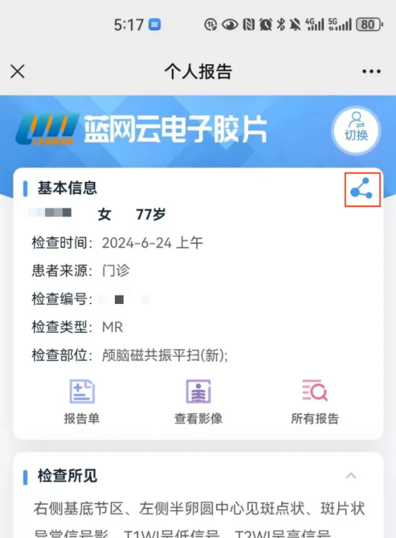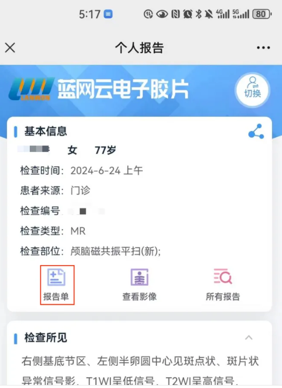 除了登录微信公众号查看检查报告外,也可以通过扫描打印出的报告单或者取片卡上的二维码查看当次检查的报告和影像。