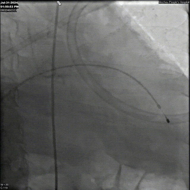 术中,手术团队精准操作器械缓缓进入患者体内,从右股动脉的主攻,到左股动脉与右肱动脉的巧妙辅助,形成了一套完美的“三路并进”策略,人工瓣膜在瓣环零位精准定位,辅助锚定器瞬间释放,确保了瓣膜的稳定植入与完美贴合。手术圆满完成,叠加封堵器械有效锚定人工主动脉瓣膜并成功释放,术后患者主动脉瓣反流明显改善。