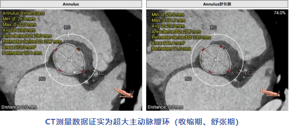 其中,主动脉瓣膜位于左心室和主动脉之间,是心脏血液循环最重要的“阀门”。主动脉瓣这个阀门发生狭窄或关闭不全,就会导致血液返流,引起左心室扩大,心脏逐渐出现动力不足甚至功能衰竭,患者会出现胸闷、憋气、胸痛,严重者会发生猝死。该类型高龄患者最佳选择是通过经导管主动脉瓣置换术(TAVR)微创介入手术治疗。但由于老伯是超大瓣环,瓣膜尺寸不足、锚定力不够,导致无法常规开展该术式。