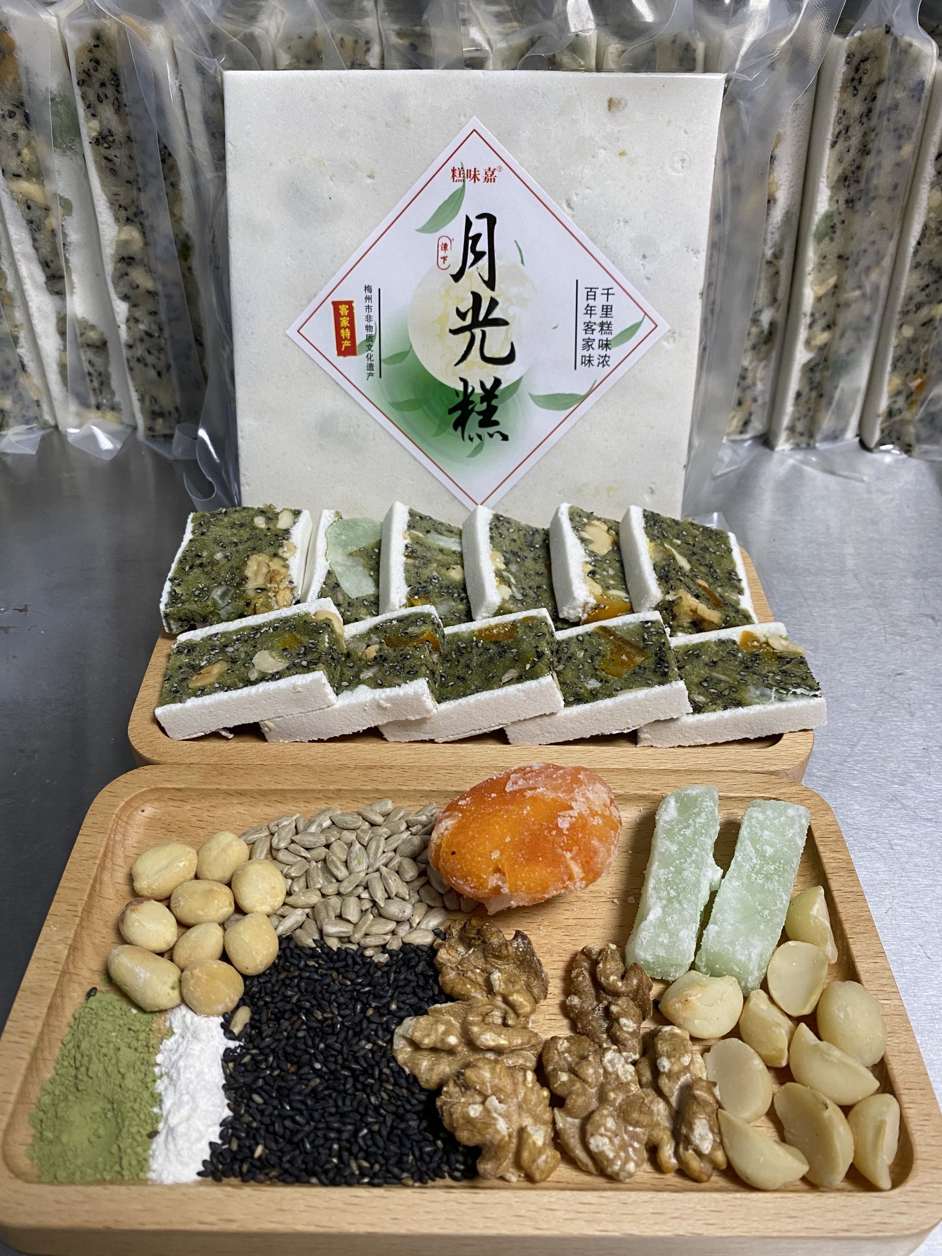 公司主打产品“糕味嘉月光糕”,是公司自主研发的一款颇受市场欢迎的明星产品,年销售额500余万元。月光糕原料是熟糯米粉、瓜条、芝麻、花生、瓜子、橘饼,为了能够被更多人认可,保证每一份材料都是经过严格的精挑细选,产品经过不断尝试改进工艺,口感比以往传统手工制作得更加丰富多样。