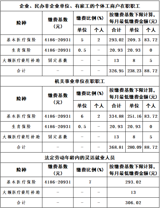 为贯彻落实国家和省关于职工基本医疗保险和生育保险缴费基数年度调整的要求,根据有关政策规定和相关统计部门公布的数据,现将我市调整后的2025年度职工医疗保险(含生育保险)的缴费基数和费率相关事宜公布如下: