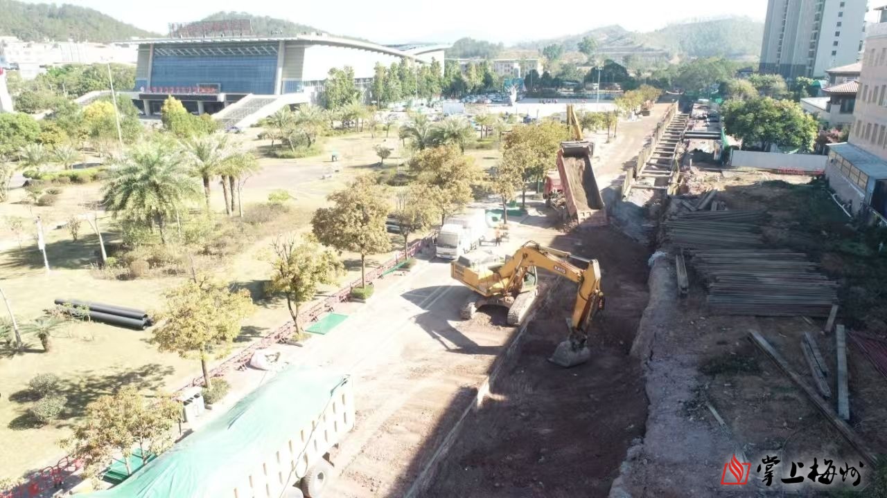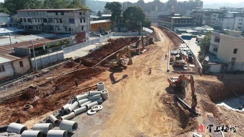梅青路改扩建项目建设现场