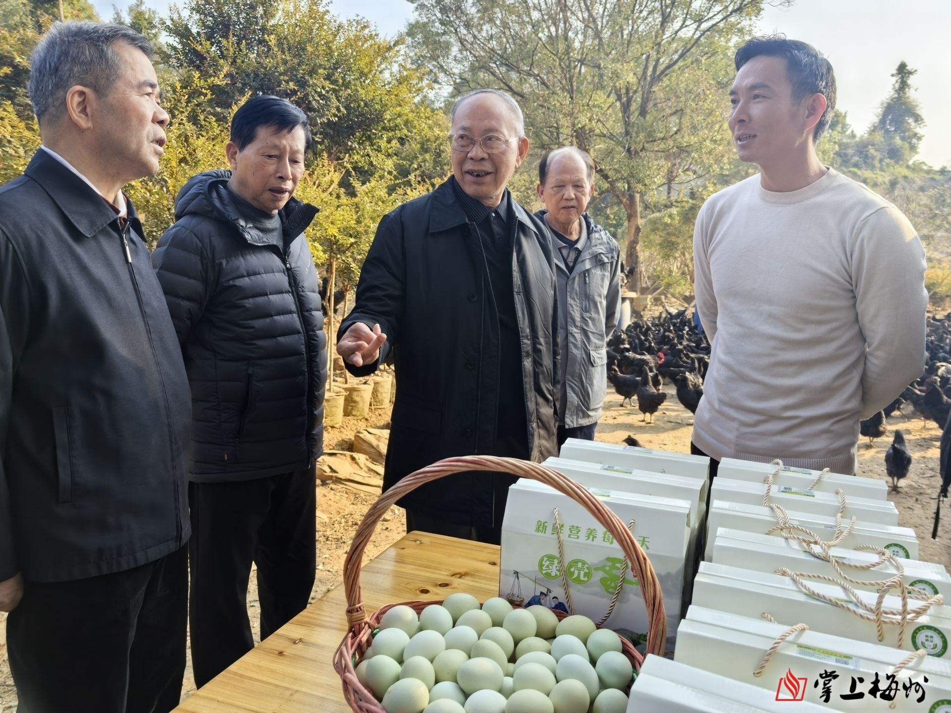 2025年1月9日,梅州市关工委何正拔主任到梅州市绿缘家庭农场调研。图为公司负责人介绍富硒产品。