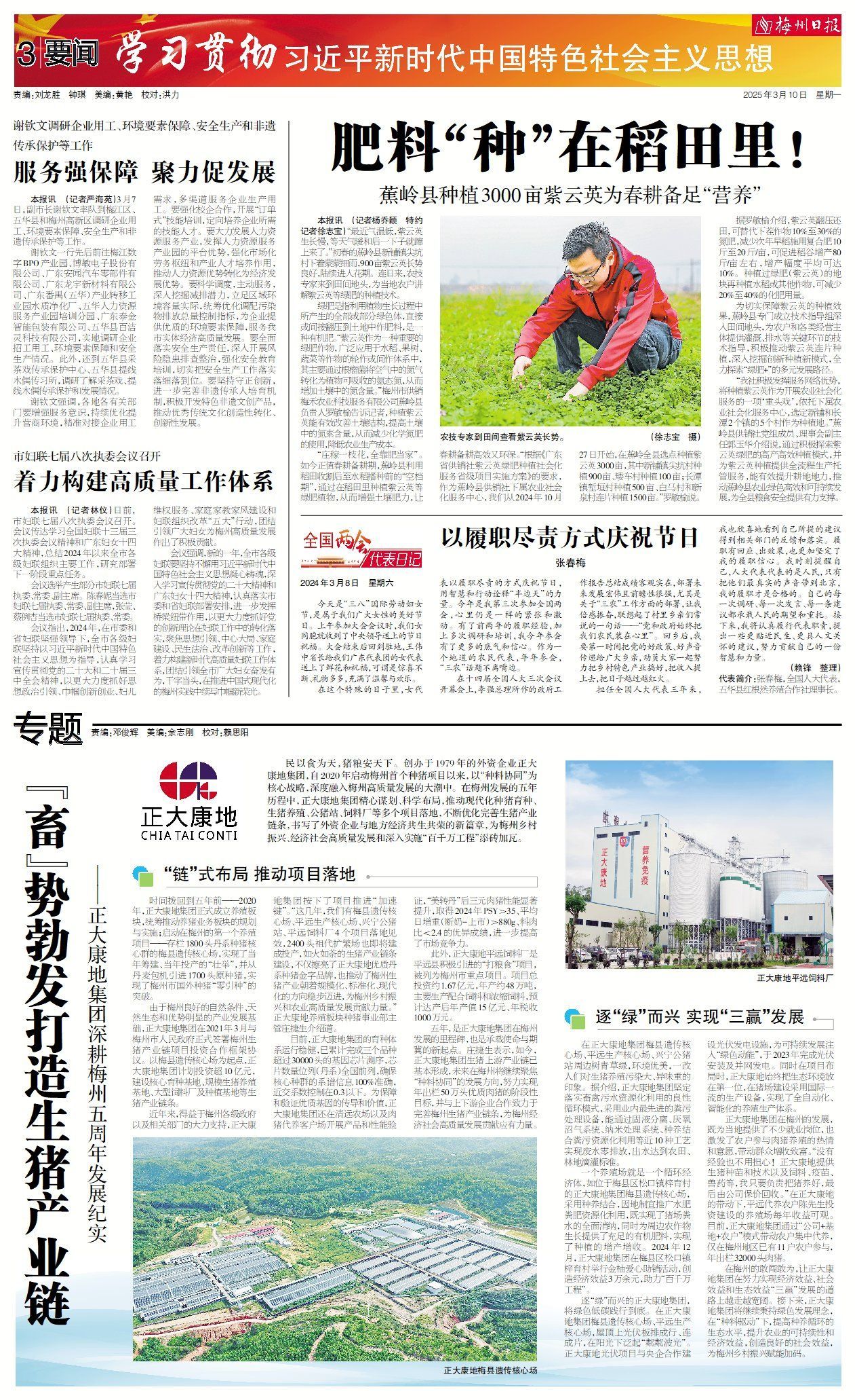在梅州的敢闯敢为,让正大康地集团在努力实现经济效益、社会效益和生态效益“三赢”发展的道路上越走越宽阔。接下来,正大康地集团将继续秉持绿色发展理念,在“种料驱动”下,提高种养循环的生态水平,提升农业的可持续性和经济效益,创造良好的社会效益,为梅州乡村振兴赋能加码。