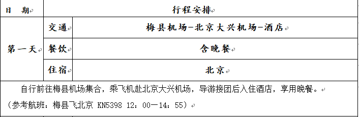 (参考航班:北京飞梅县KN5397 08:15-—11:15)