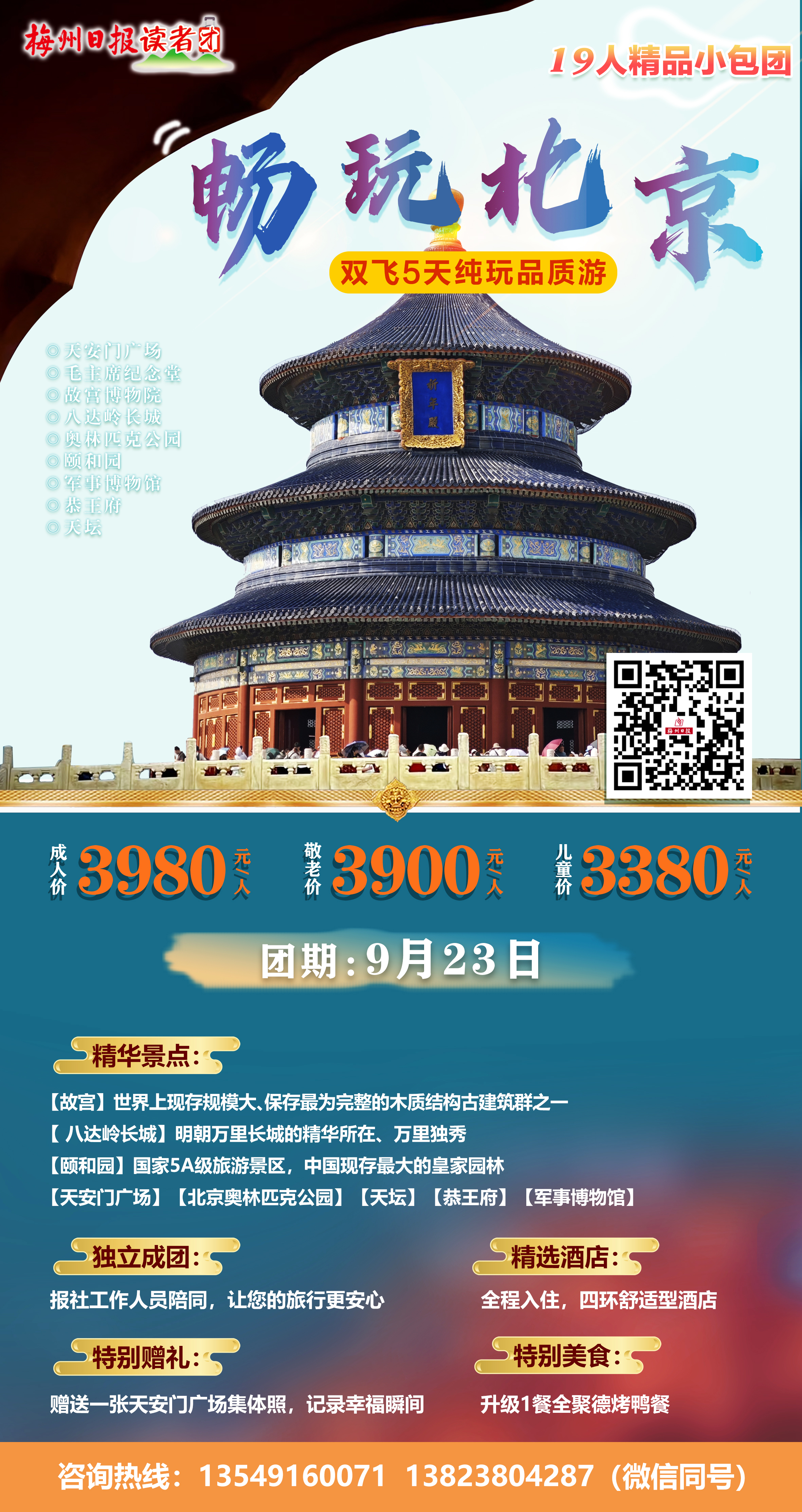 早餐后指定时间前往北京大兴机场,乘机返回梅县机场,结束愉快的北京之旅!