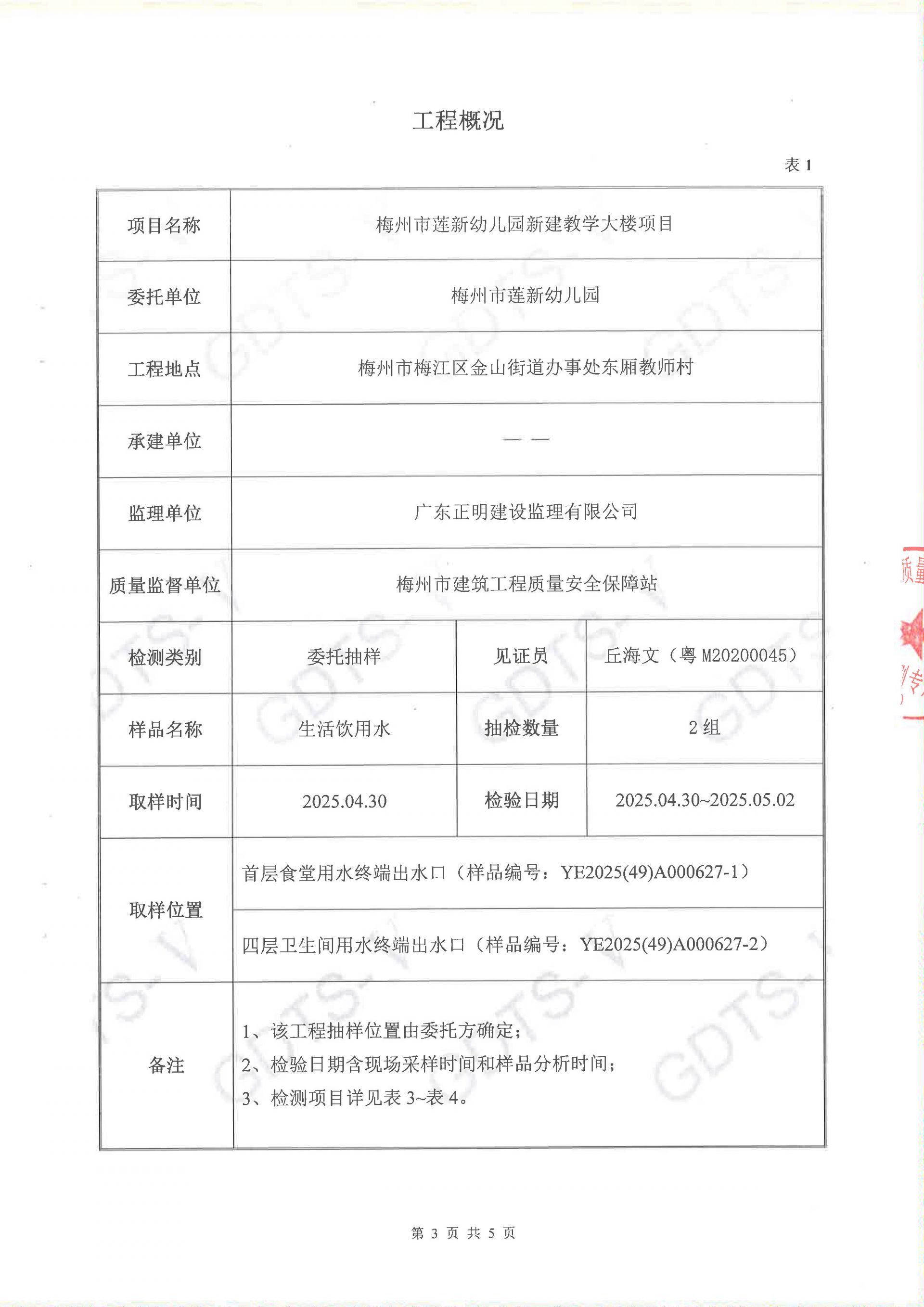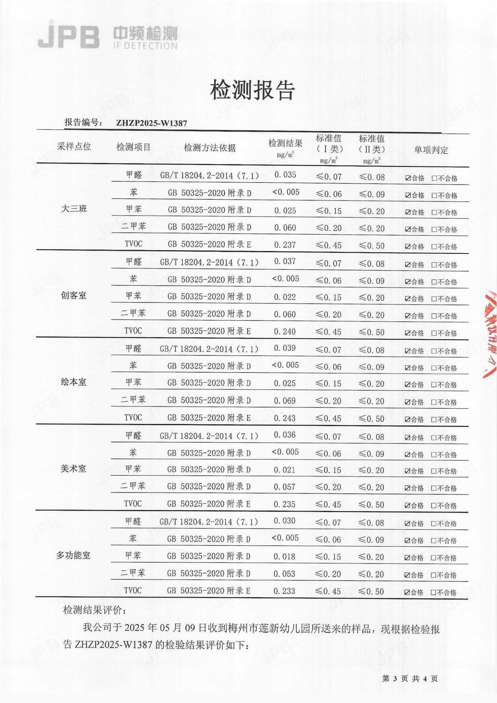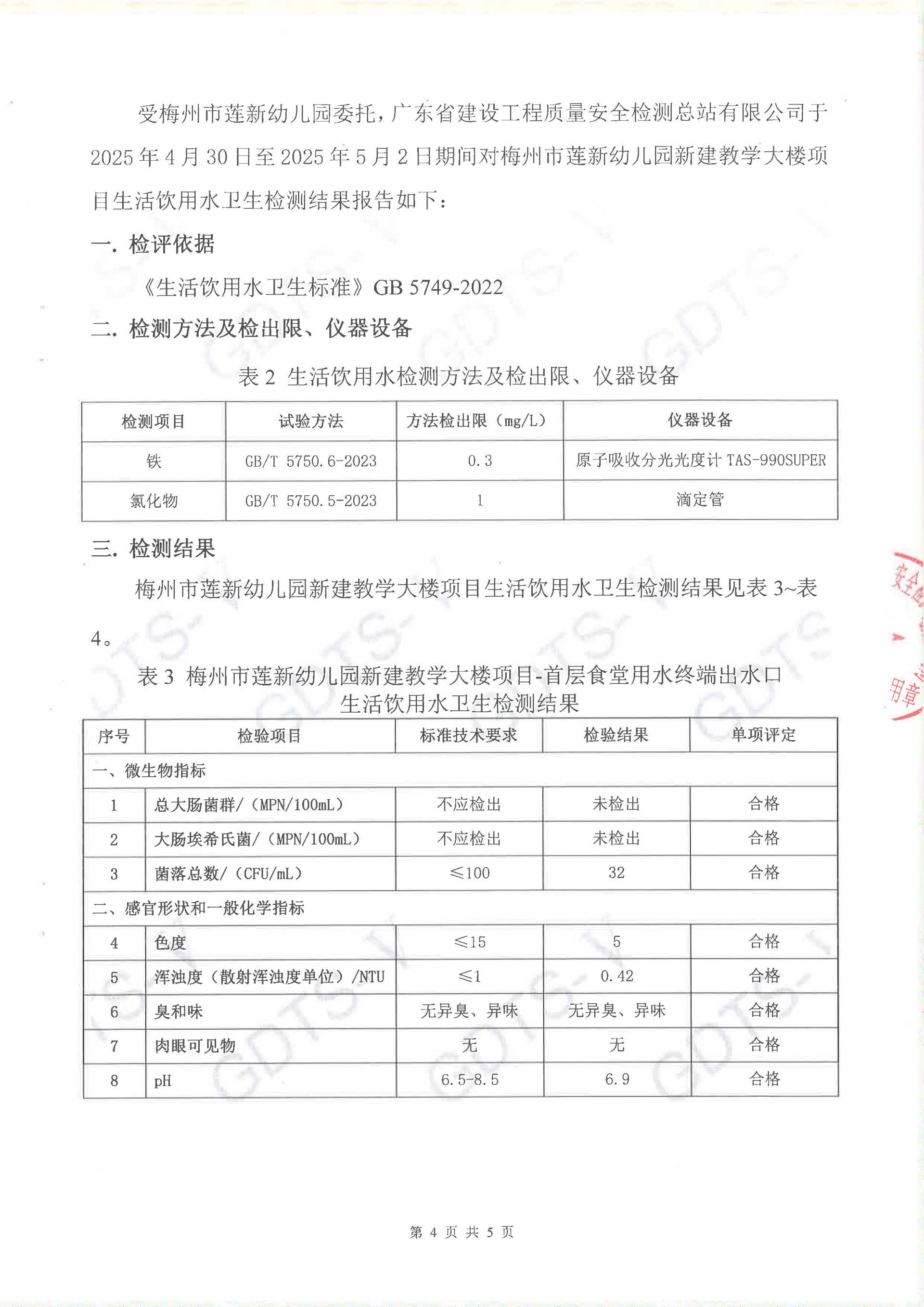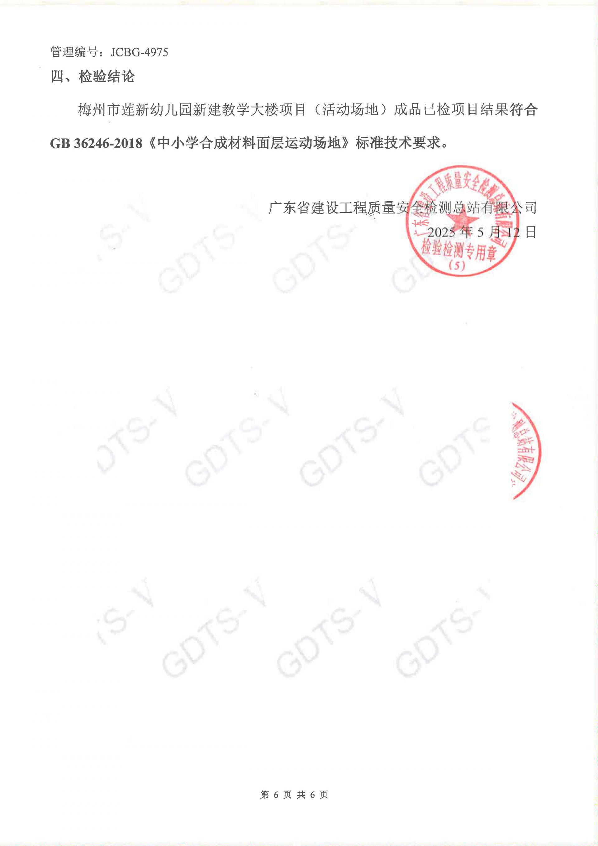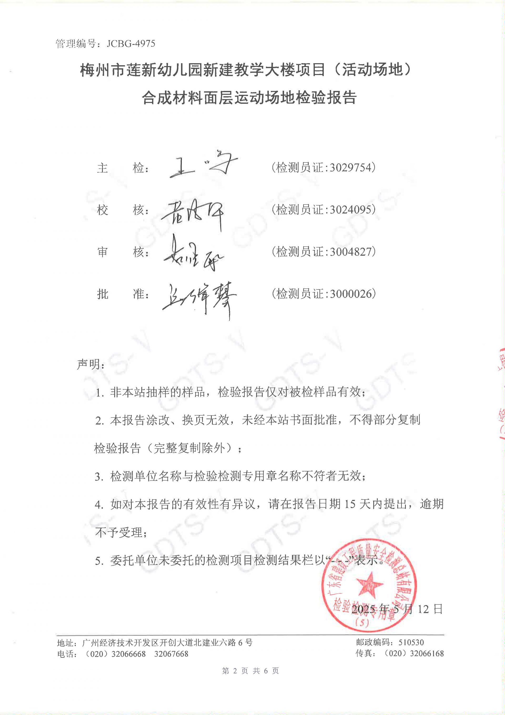 梅州市莲新幼儿园空气质量检测、水质检测、塑胶跑道检测等报告