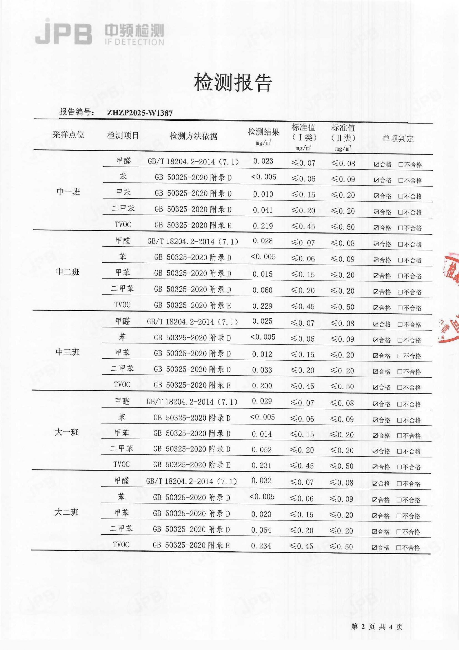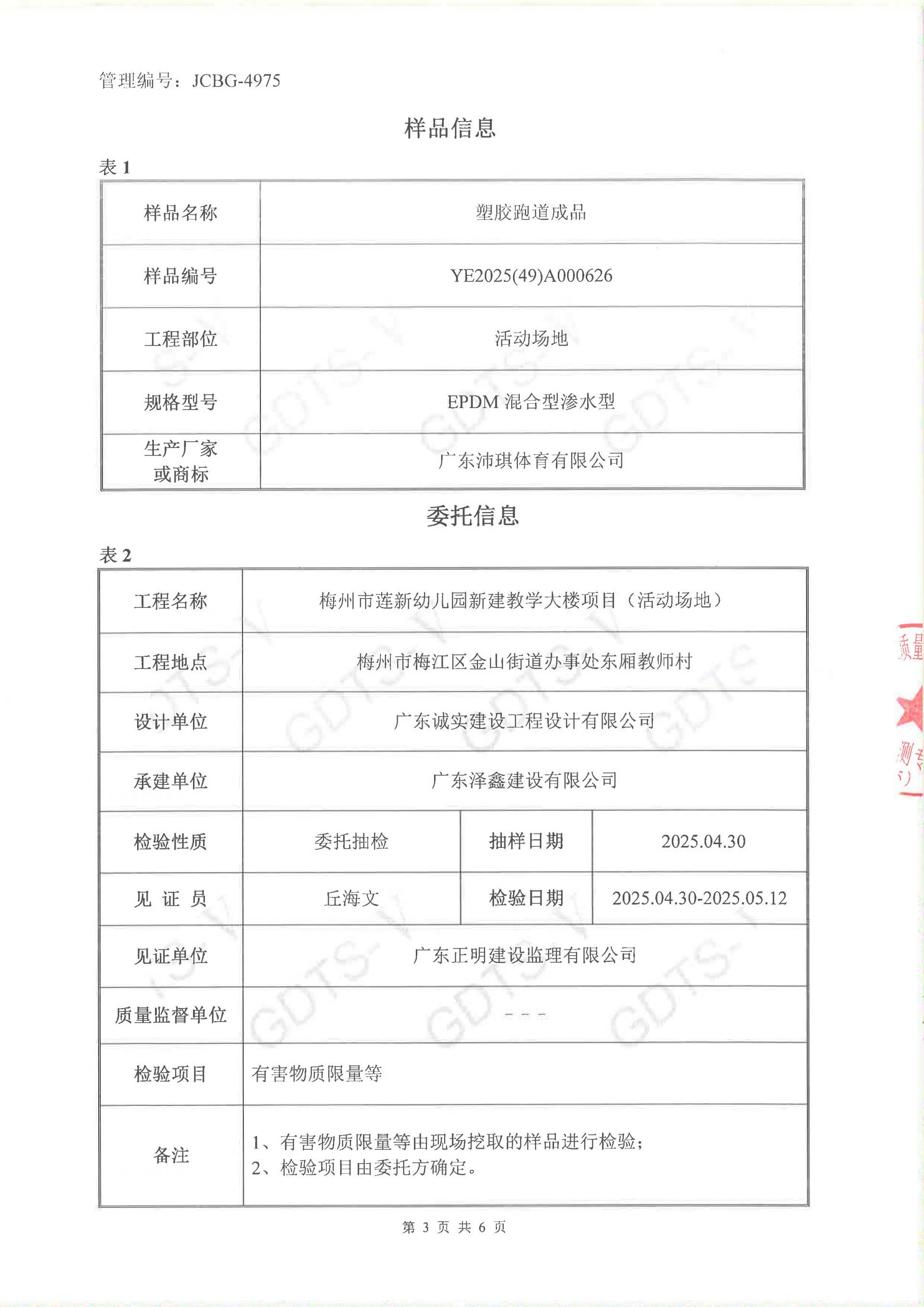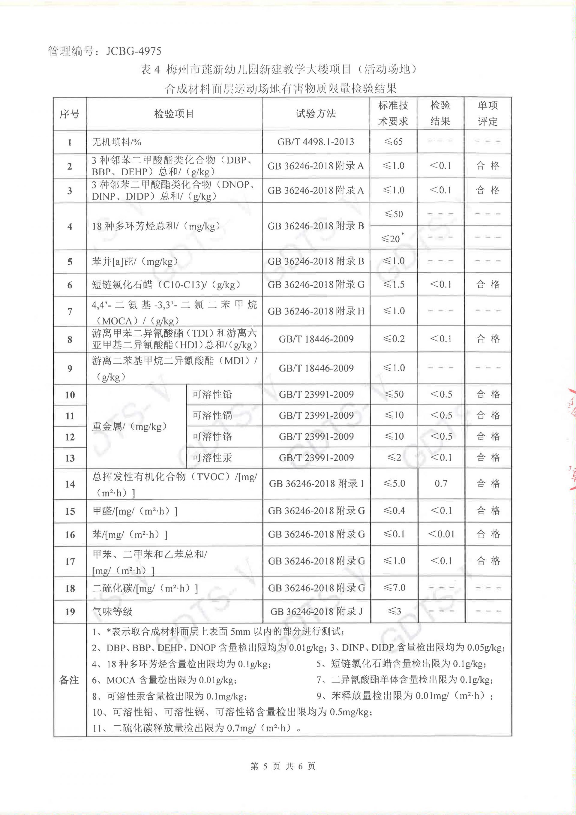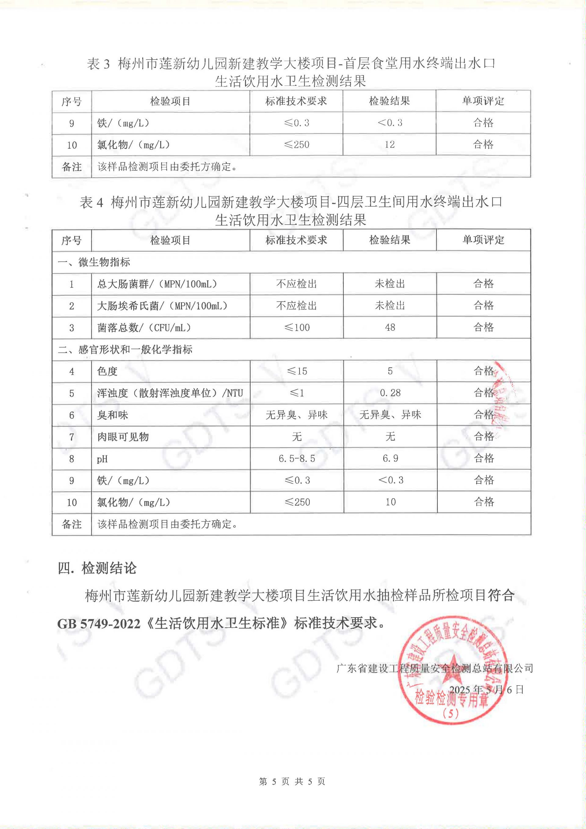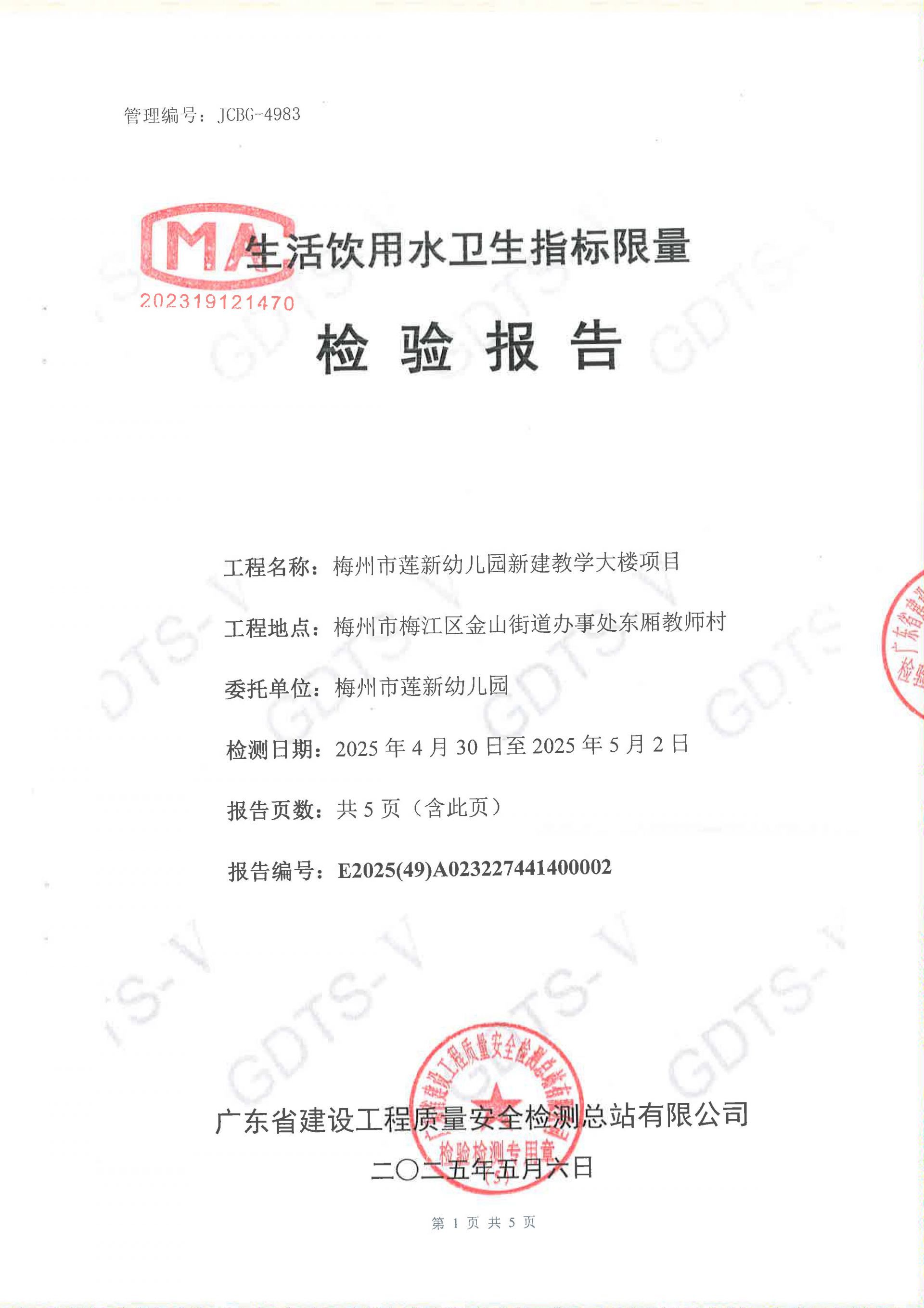 梅州市莲新幼儿园空气质量检测、水质检测、塑胶跑道检测等报告