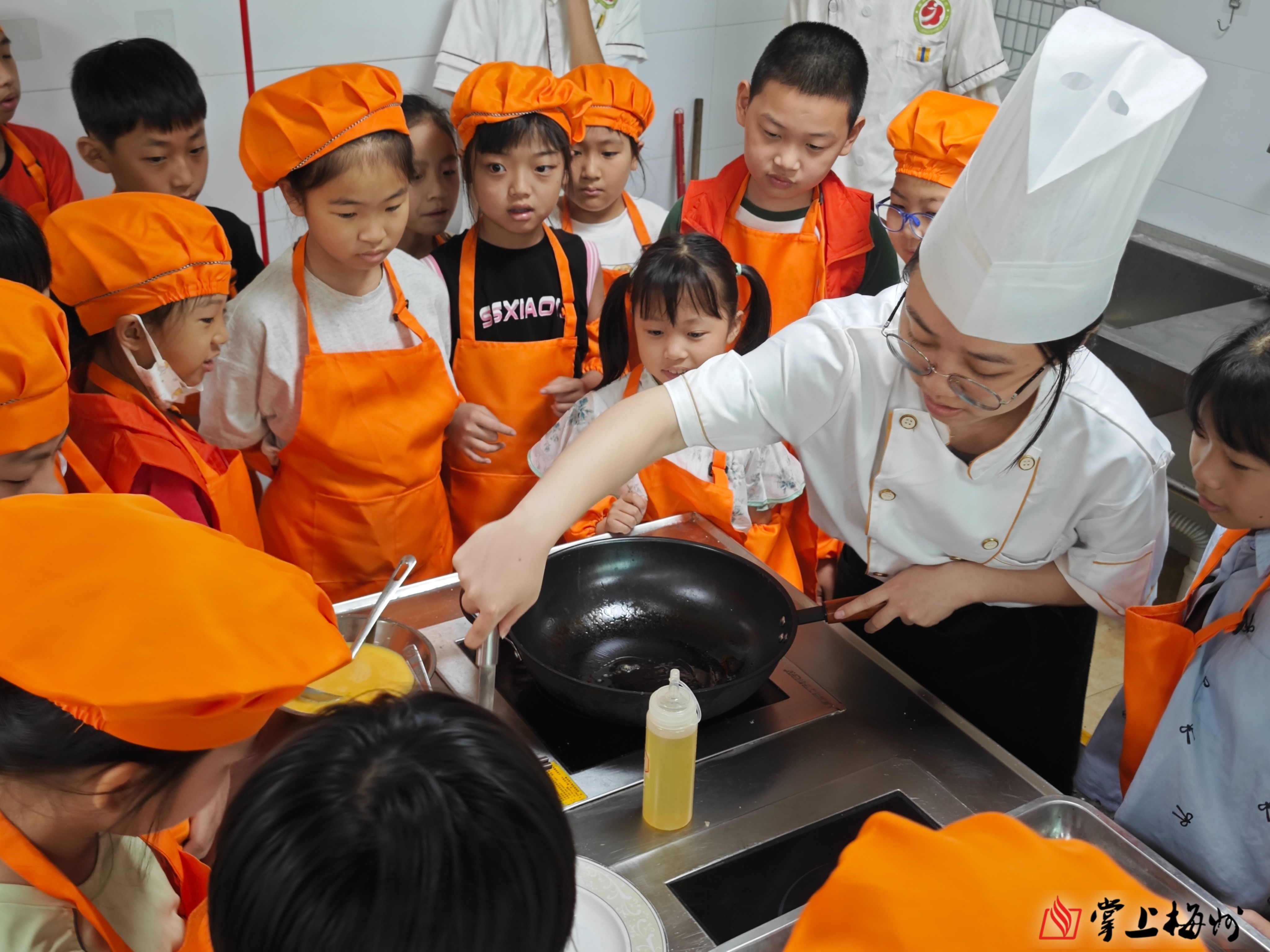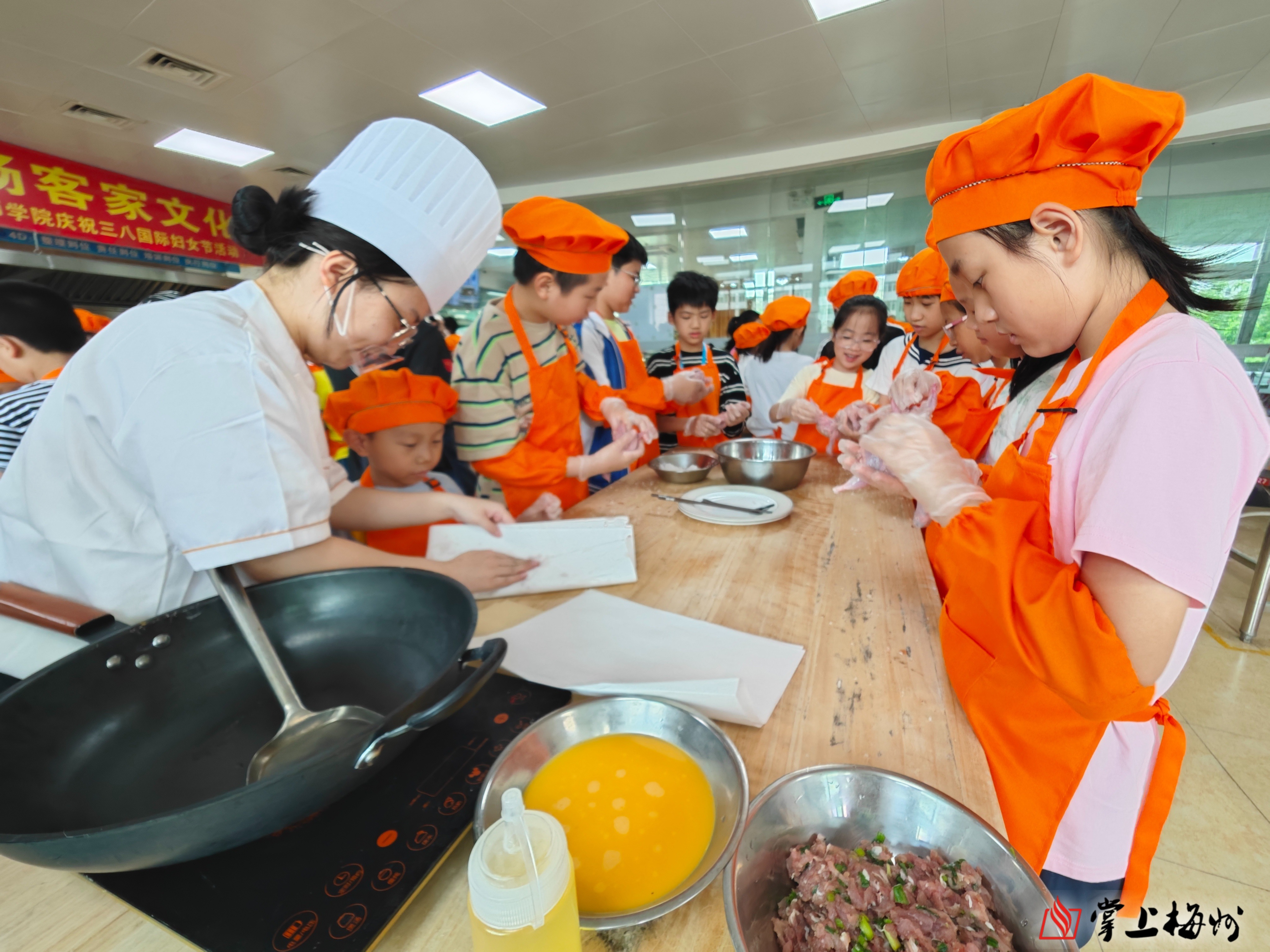 《客家菜小师傅》——盐焗鸡与酿鸡蛋的“味觉密码”。走进梅州市技师学院,孩子们化身“小厨神”,从选材到火候全程参与盐焗鸡、酿鸡蛋制作,在翻炒与调味中感知“一菜一故事,一味一乡愁”的客家饮食文化。