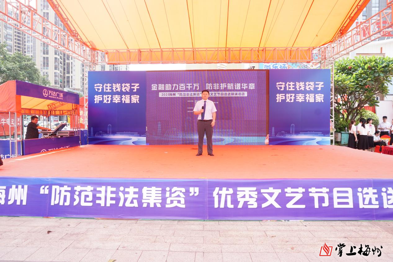 为深入贯彻落实“百千万工程”战略部署,积极响应国家关于防范非法集资的号召,营造良好的金融环境,梅州市财政局、梅州金融监管分局、人民银行梅州市分行、梅州市司法局,于5月23日在梅州万达商业广场举办2025年梅州“防范非法集资”优秀文艺节目展演活动选拔赛。此次活动不仅是一场文艺的盛宴,更是梅州金融系统工作人员展现专业素养、创新能力和社会责任感的重要舞台,为梅州金融高质量发展注入新的活力。