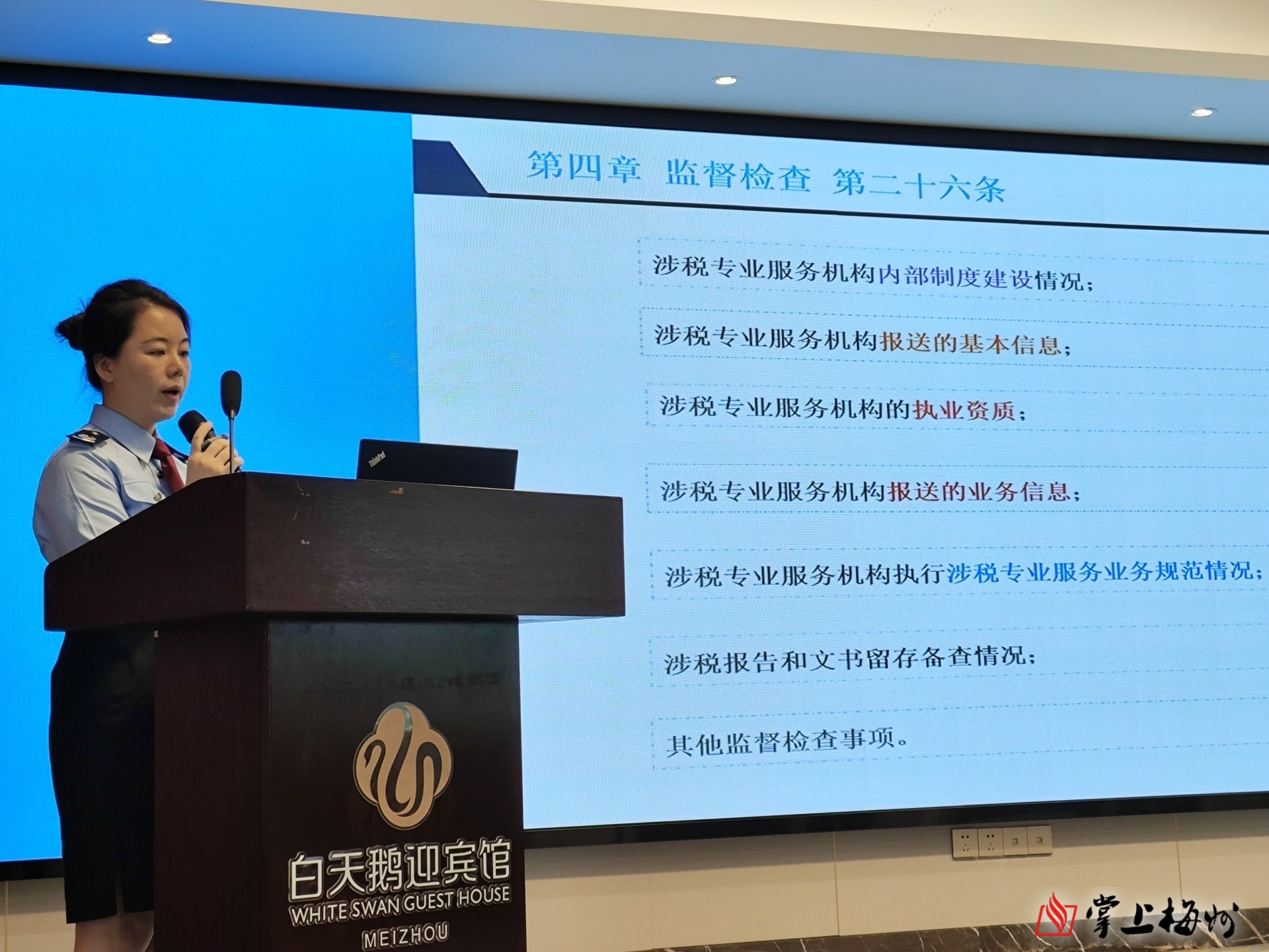 为纵深推进系列利企便民服务举措,进一步提升在梅企业投资兴业的获得感和满意度,2025年5月23日,“政税银携手 护企新发展”为主题的财税行业政策宣讲活动在梅州正式举行,梅州市市场监督管理局、国家税务总局梅州市税务局、中国人民银行梅州市分行与中国工商银行股份有限公司梅州分行相关负责人,近百家财税行业机构代表、企业代表等共同参会,现场与会嘉宾围绕深化政税银合作、优化营商环境、赋能企业发展进行深度交流。