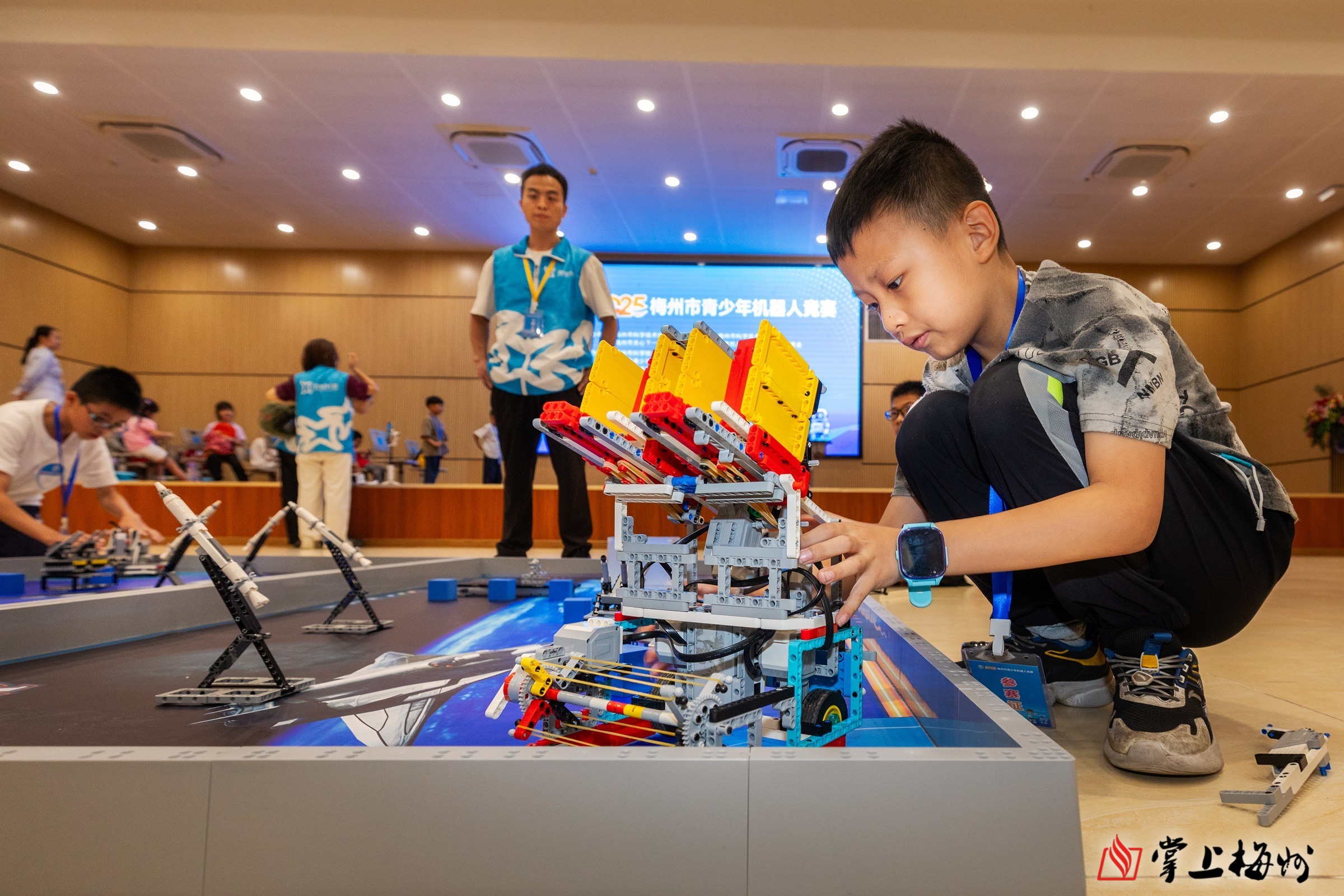 “ATC对抗赛——科战未来”项目的参赛选手在比赛中迅速调整机器人的控制模式。(连志城 摄)