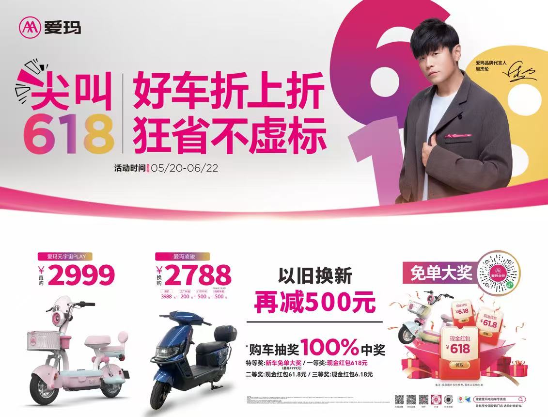 ❤电动车展区:爱玛惠民季,政企双补贴福利至高可享1500元补贴,以旧换新指定单位,明星车型置换价最低仅需999元,更有百公里续航车型、TCS防滑功能车型强势登场,轻松应对山路爬坡、颠簸小路等复杂路况,购车即可参与抽奖,免单大奖、618 现金红包等,100%中奖。
