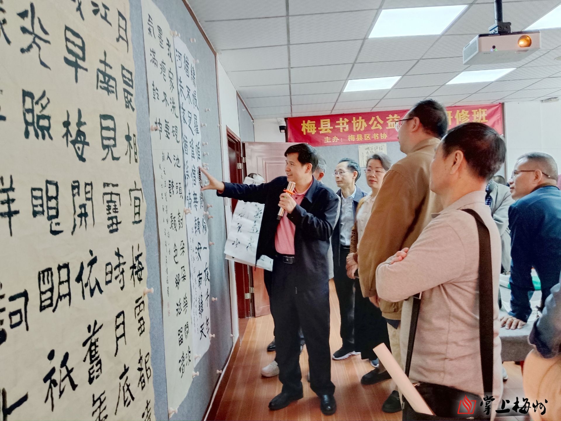 丘仕坤在梅县书协公益书法研修班与来自全市各地的书法家和爱好者共同研讨探索书法发展