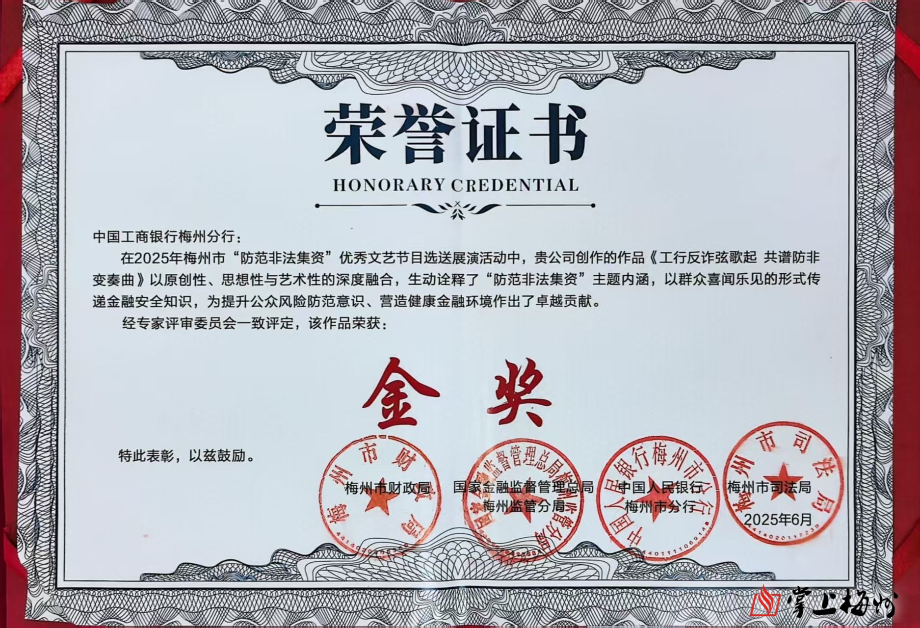 在此次活动中,该行精心打造的原创舞台剧《工行反诈弦歌起 共谱防非变奏曲》凭借其深刻的主题立意和精彩的表演,荣获活动“金奖”,展现了该行在金融知识普及和文艺创作方面的融合创新。