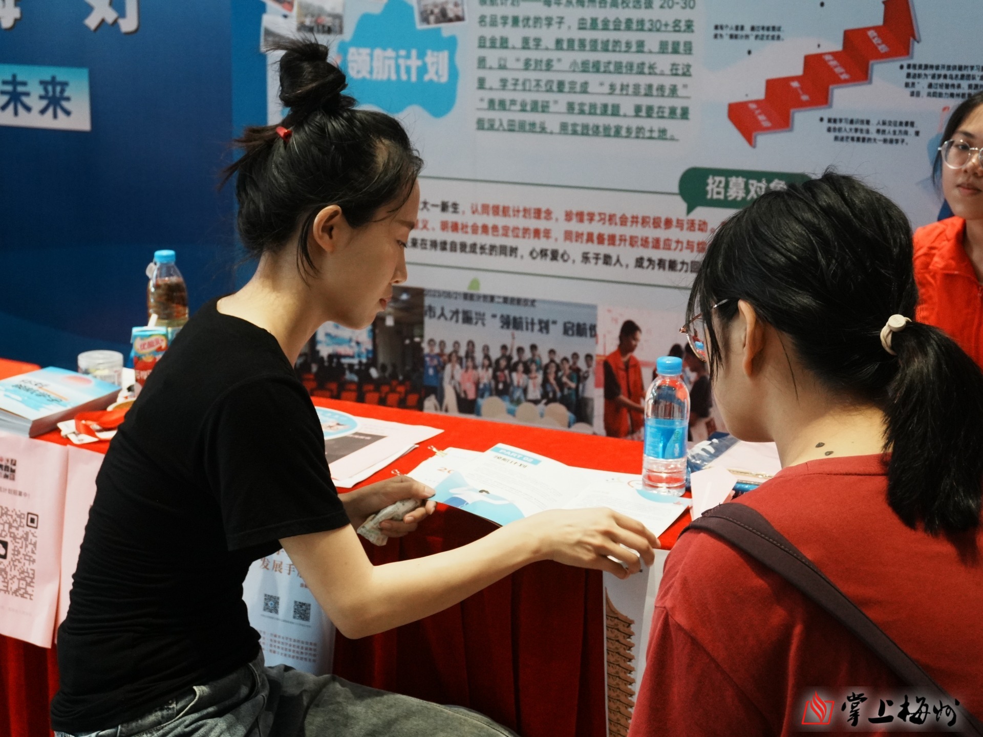 三场活动开展过程中,梅州市振兴乡村公益基金会的“领航计划”持续发力。基金会代表详细宣讲了该计划的背景、发展前景以及成效,项目 秉持“ 自信、 自强、爱国、利他 ”理念,汇聚乡贤与行业精英力量,搭建成长平台,培育新时代青年,助力梅州大学生发展,为乡村振兴注入人才动力。在梅州市世界客商中心的活动现场,梅州市振兴乡村公 益基金会的公益互动摊位吸引了众多考生和家长。其中,“领航计划”的介绍成为焦点,考生和家长通过展板展示、宣传手册等方式,深入了解了这一项目的深远意义与实际成效。此外,心愿墙和情绪回收站的玩法更是成为现场的一大亮点。考生纷纷在纸上写下自己对未来的美好期许,贴在墙上,而情绪回收站则为考生提供了一个释放压力、舒缓情绪的空间。这一独特的互动环节,不仅丰富了高考招生咨询会的内容,更体现了梅州市振兴乡村公益基金会对考生和家长的人文关怀。