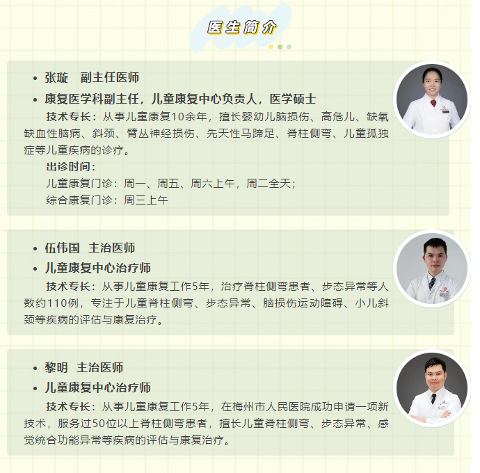 梅州市人民医院儿童康复中心针对不同类型的脊柱侧弯患者,可进行精准评估和制定个体化治疗方案,治疗包括体态评估、X光脊柱全长片、运动治疗(施罗斯体操训练)、手法治疗(脊柱推拿治疗)、姿势控制(日常姿势控制)、矫形支具(硬性支具和柔性支具)等。