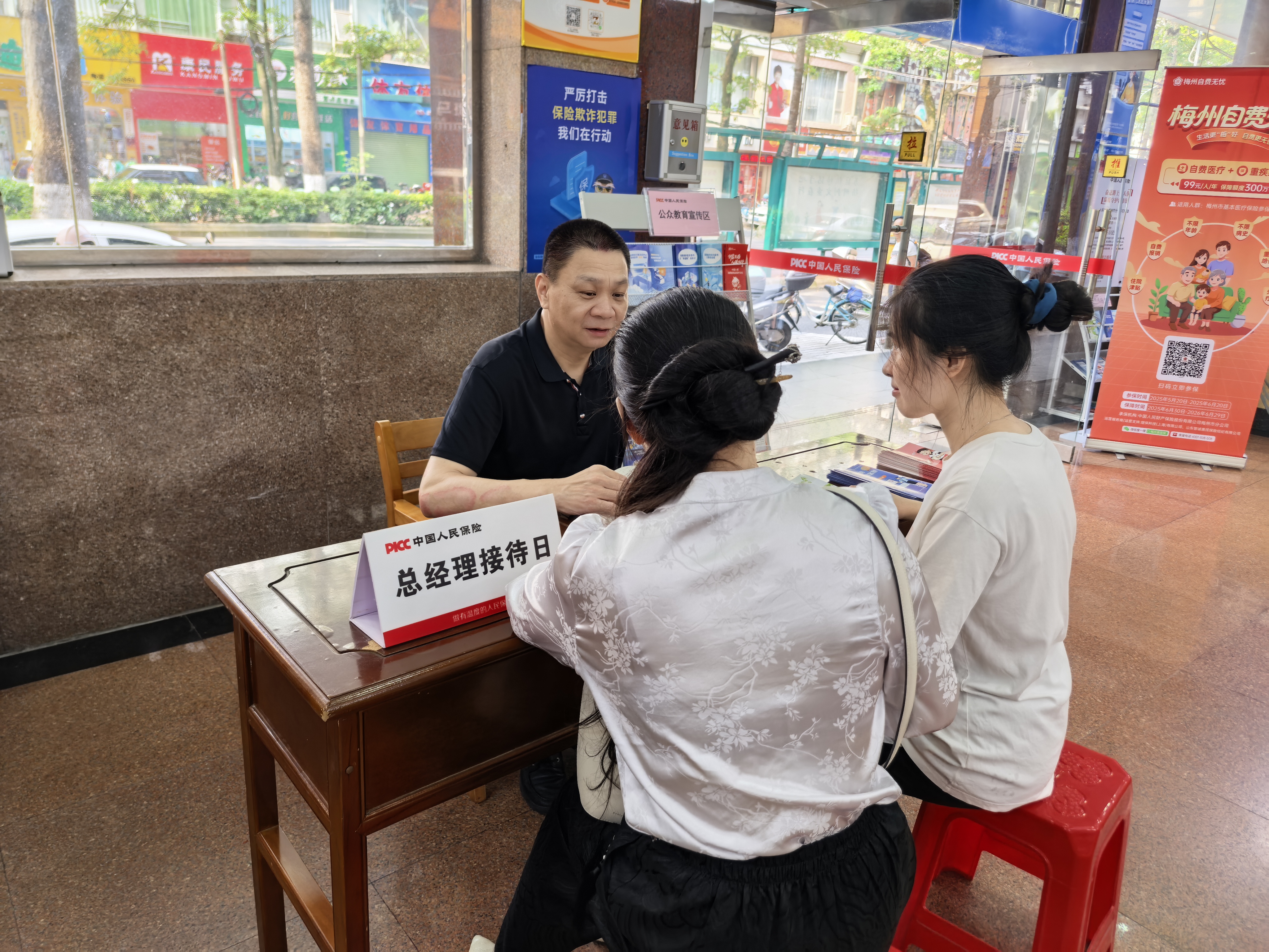 7月8日,梅州市分公司在一楼营业大厅开展“总经理接待日”活动以及为民办实事纠纷调解专场,通过直面客户、倾听心声、解决问题,进一步增进客户对梅州分公司及保险行业的信任与认可。梅州市分公司副总经理黄伟东亲自接待来访客户,面对面倾听客户在保险服务、理赔流程、产品理解等方面的疑问与建议,逐一耐心解答并记录反馈。同时,纠纷调解专场聚焦客户在保险业务中可能遇到的争议问题,通过专业团队现场调解、梳理流程、明晰责任,高效化解潜在矛盾,切实为客户排忧解难。