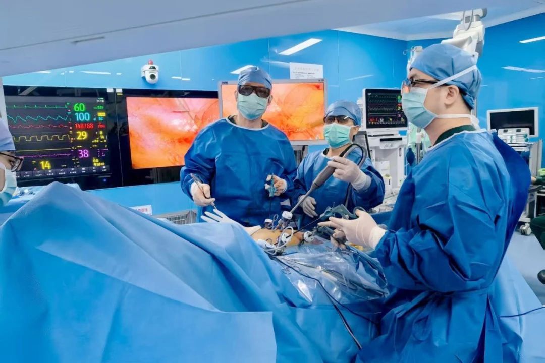 梅州市人民医院胃肠外科专家吴祖光副院长带领李志旺副主任医师团队,完成高难度“三原发”结直肠癌微创保肛手术。(医院供图)