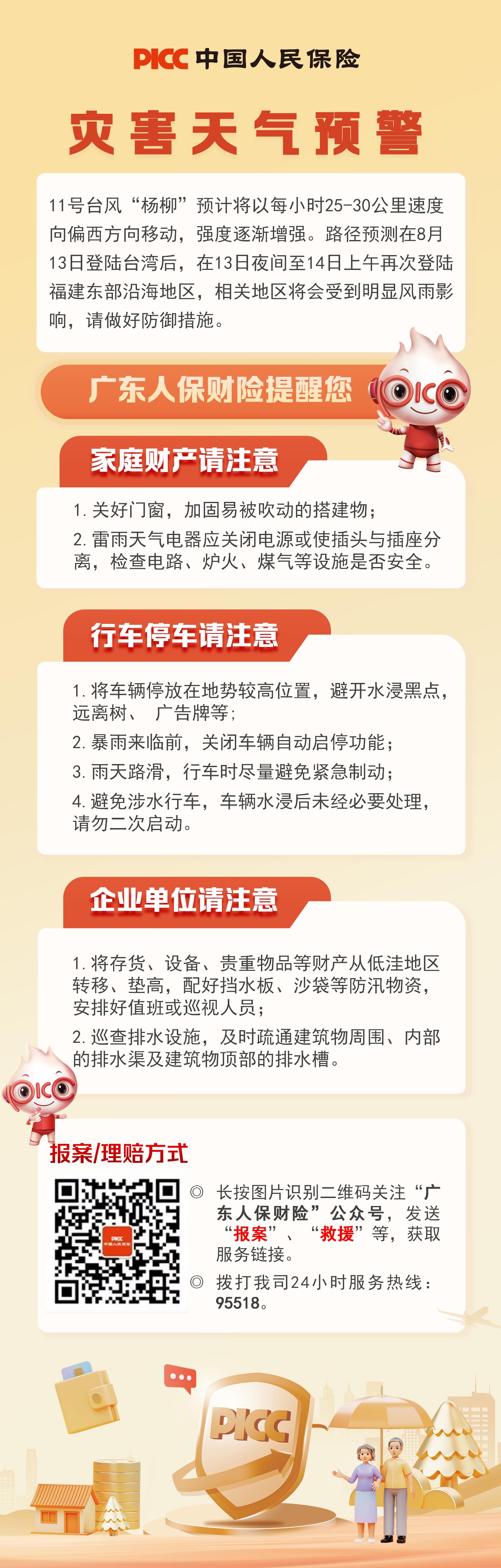 下一步,人保财险梅州市分公司将持续密切关注台风“杨柳”动态,一旦发生灾情,将第一时间启动应急响应,全力做好查勘定损、理赔服务工作,以实际行动践行“人民保险 服务人民”的初心使命。