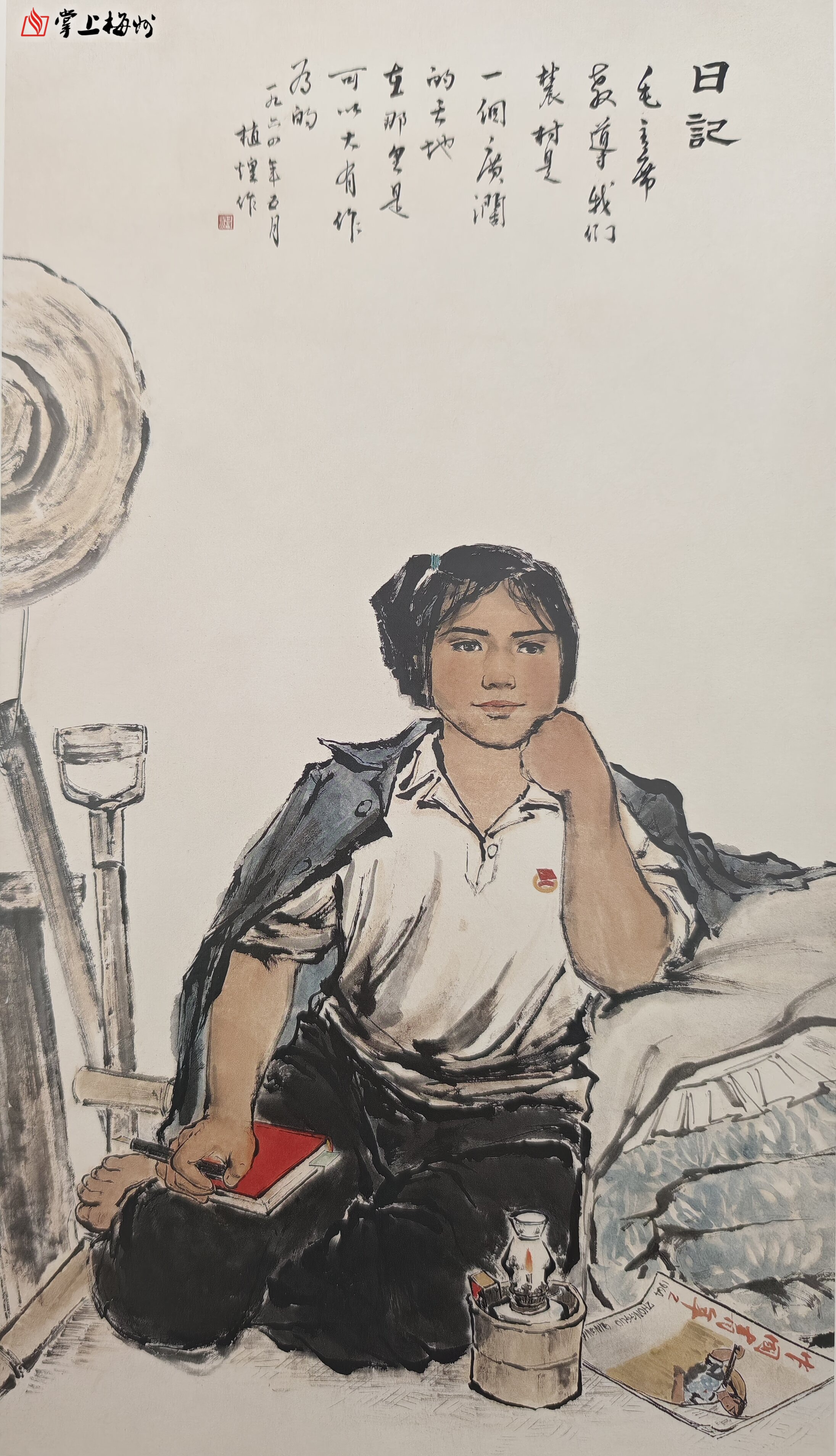 ▲日记 120cm x 67cm 纸本设色 1964年 此画为洪植煌成名作、代表作,入选第四届全国美展、日本“中国现代绘画展”,被中国美术馆、广州美术学院收藏,由文化部选定为出国作品。
