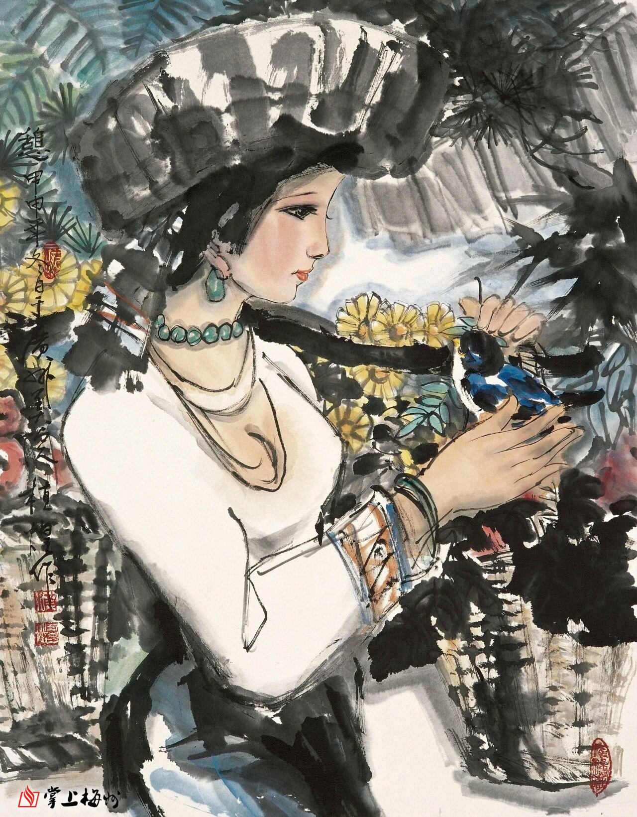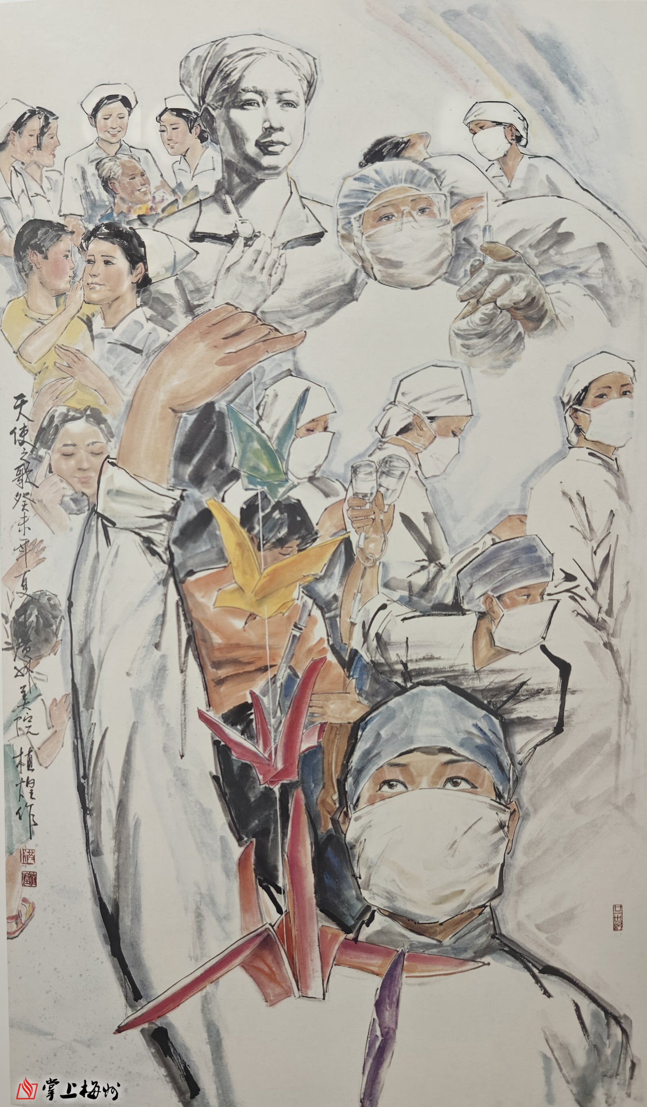 ▲天使之歌 166cm x 97cm 纸本设色 2003年此画由广东省疾控中心收藏。