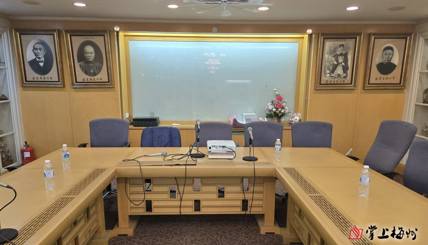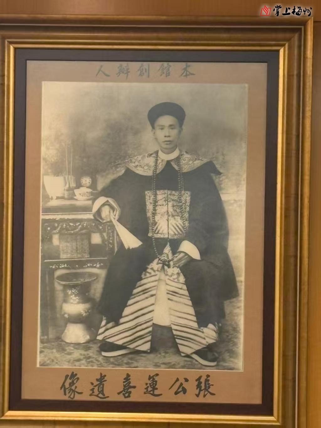 马来西亚雪隆嘉应会馆会客室悬挂着四位创办人的照片,左二即为张运喜。