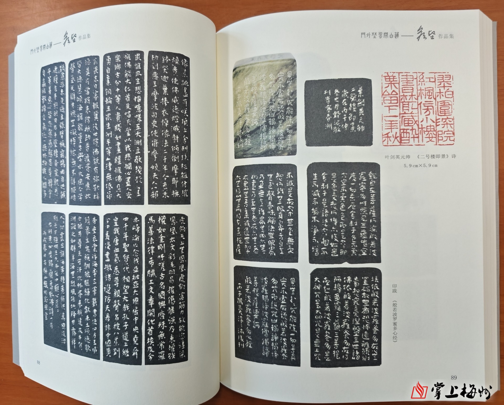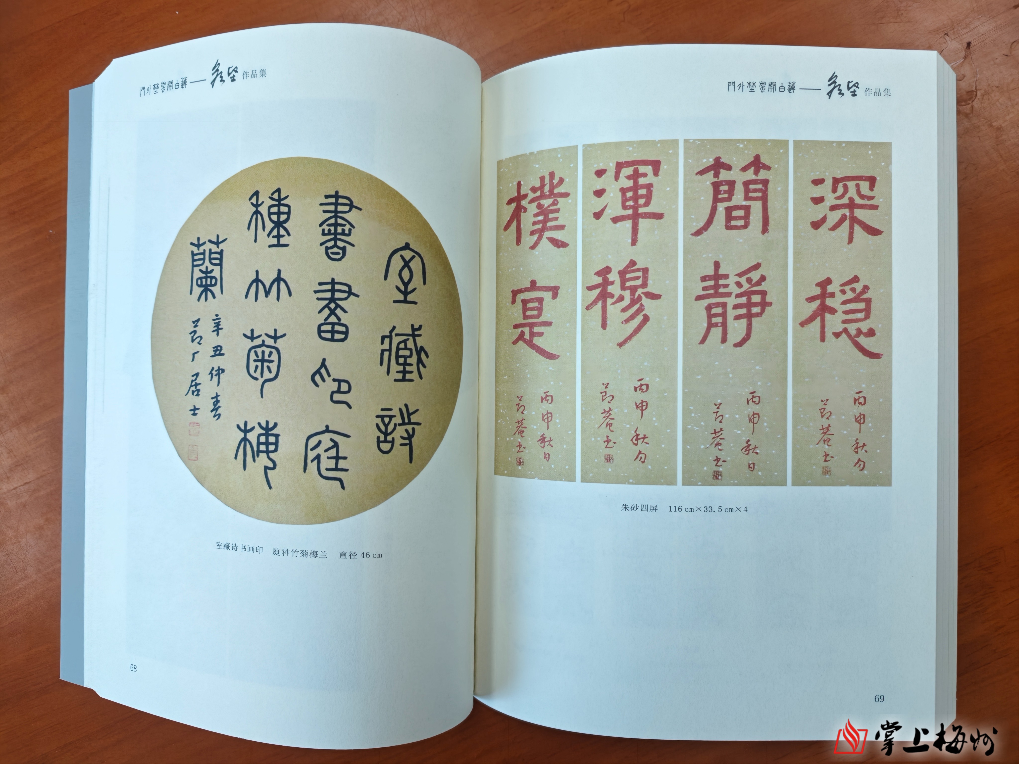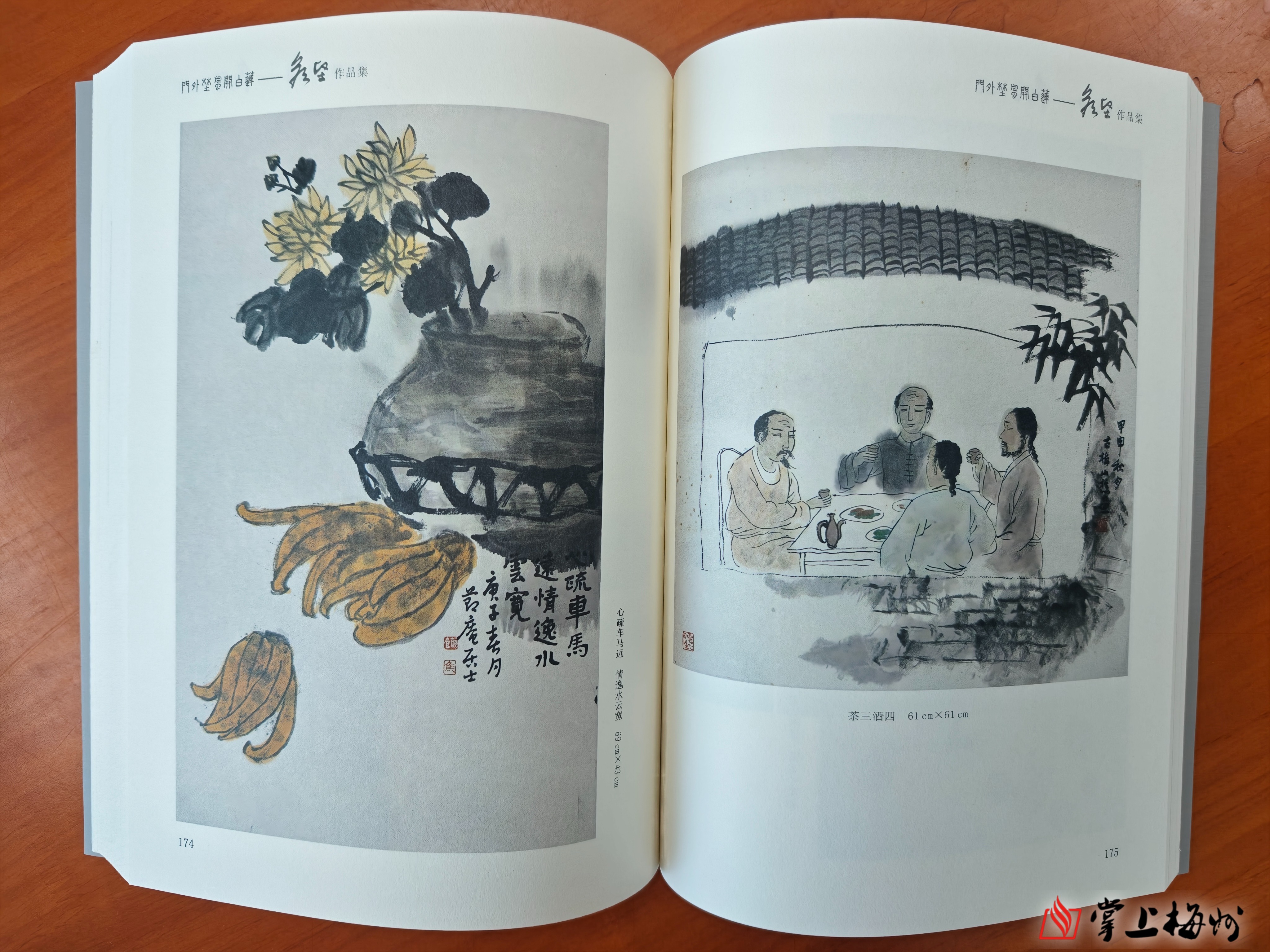 ▲《侯坚作品集》中的篆刻、书法、绘画作品(部分)。(林德培 摄)