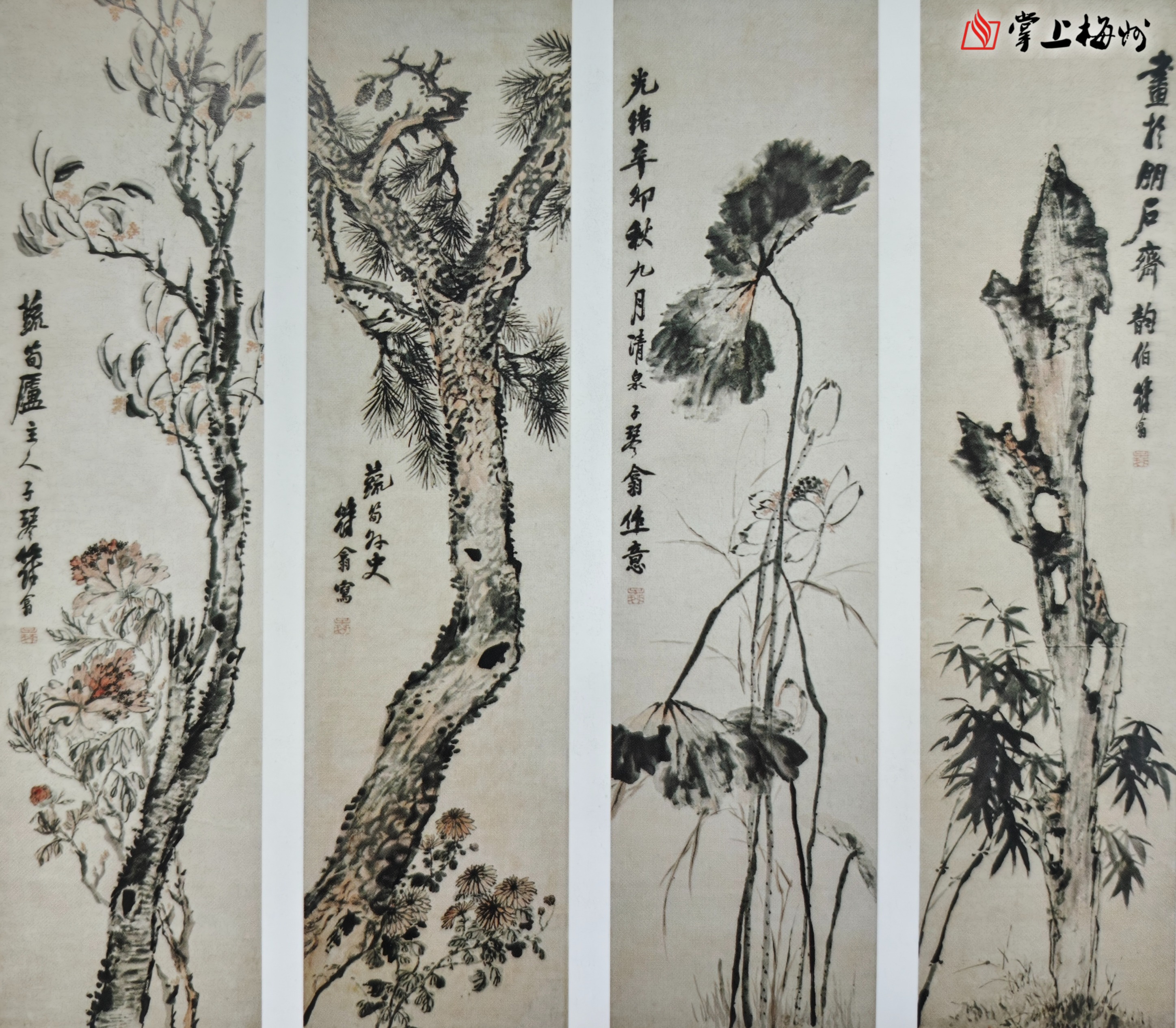 ▲清光绪十七年(1891)符翕花木四条屏 纸本 设色 纵183.0厘米 横46.5厘米