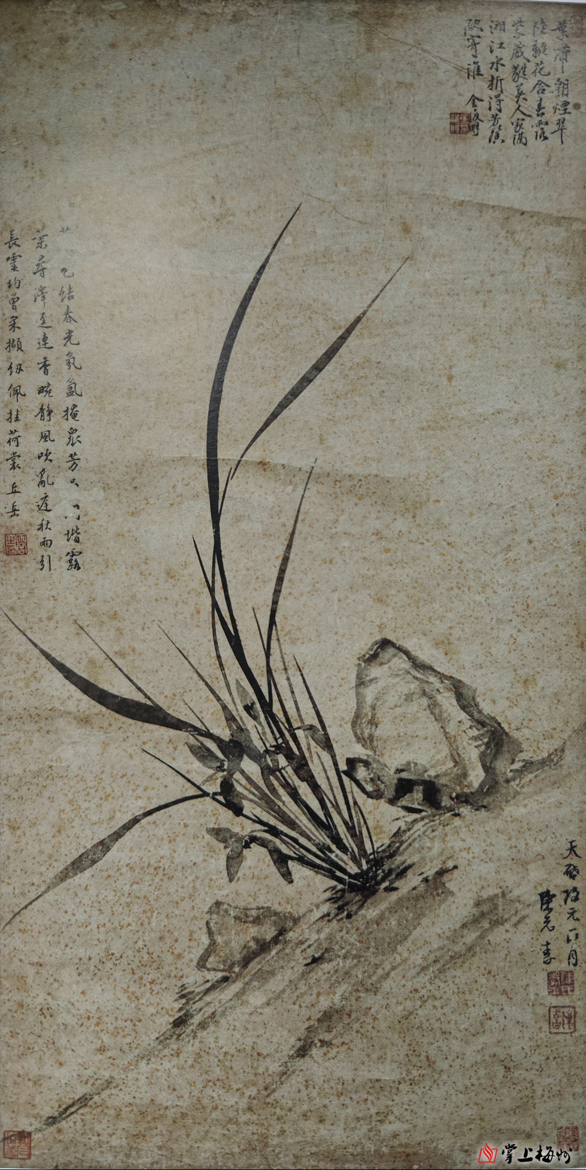 ▲明天启元年(1621)陈元素兰石图轴 纸本 墨笔 纵63.2厘米 横32.6厘米