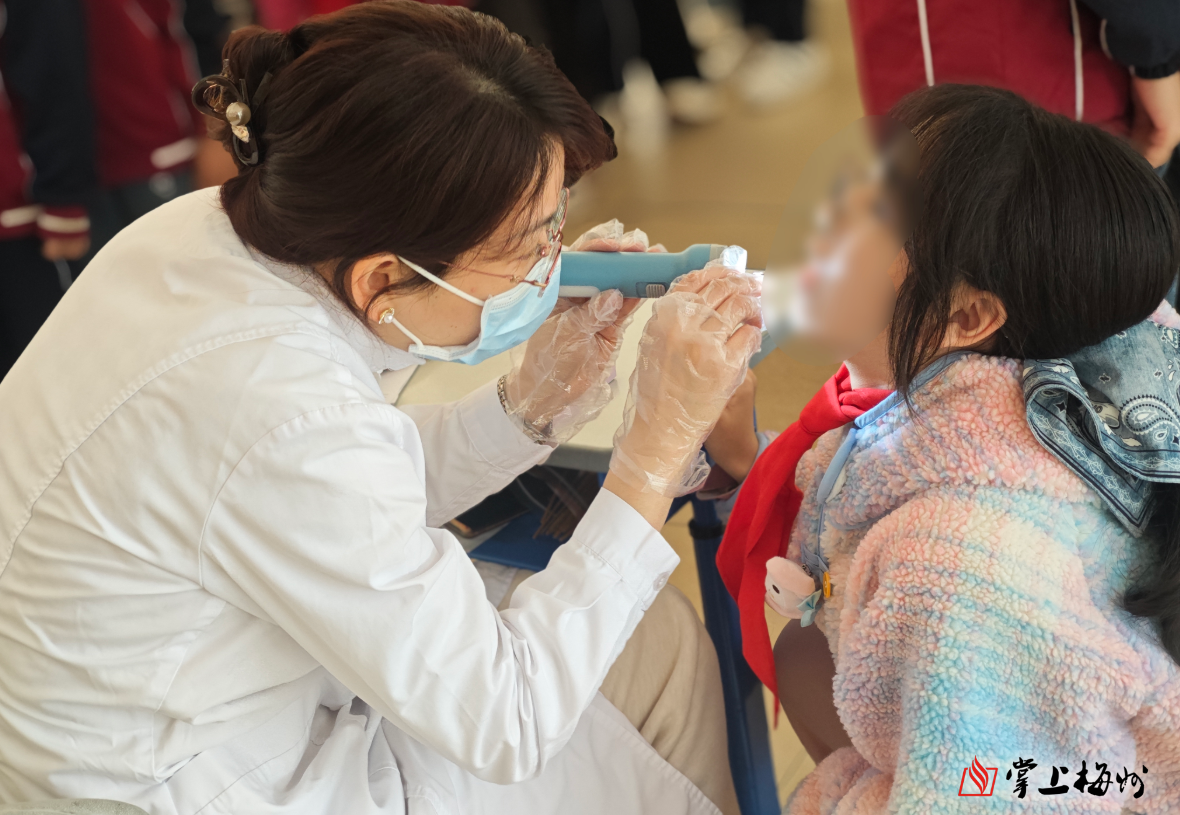 随后,市人民医院口腔科、脊柱外科、小儿外科等多学科专家团队,为叶剑英红军小学在场学生提供了专业、细致的健康检查和咨询服务。记者看到,医护人员依次为同学们进行体格检查、口腔检查及脊柱健康评估等,并且基于检查结果提出针对性的健康建议,普及日常保健知识,帮助老师和家长对孩子们的身体状况有更全面的了解。