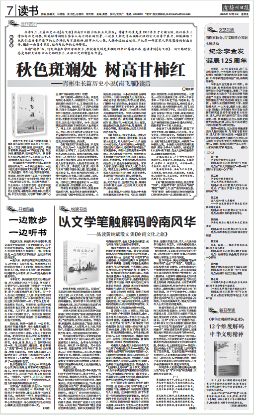 岭南多胜景,文脉自古长。日前由广东旅游出版社推出的黄纯斌散文集《岭南文化之旅》,以文学为笔、文化为墨,为读者铺展了一幅兼具历史厚度与时代温度的岭南画卷。该书作者不仅以典雅文笔勾勒山河之美,还以“深圳建设见证者”的独特视角,注入旁人难及的真情实感。