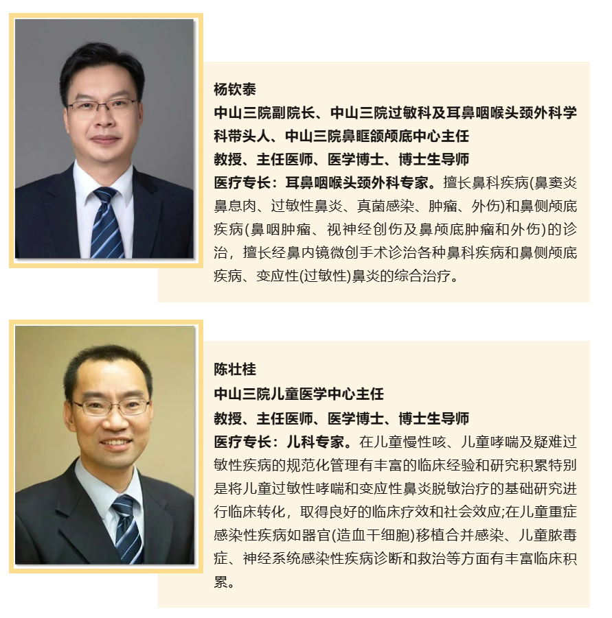 来自中山大学附属第三医院耳鼻咽喉头颈外科、儿科、皮肤与整形美容科、呼吸与危重症医学科等知名变态反应学专家团队。