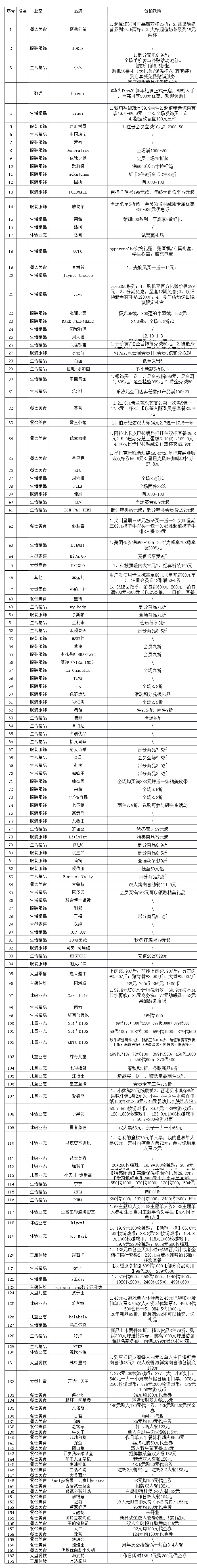 附上详细商家优惠清单