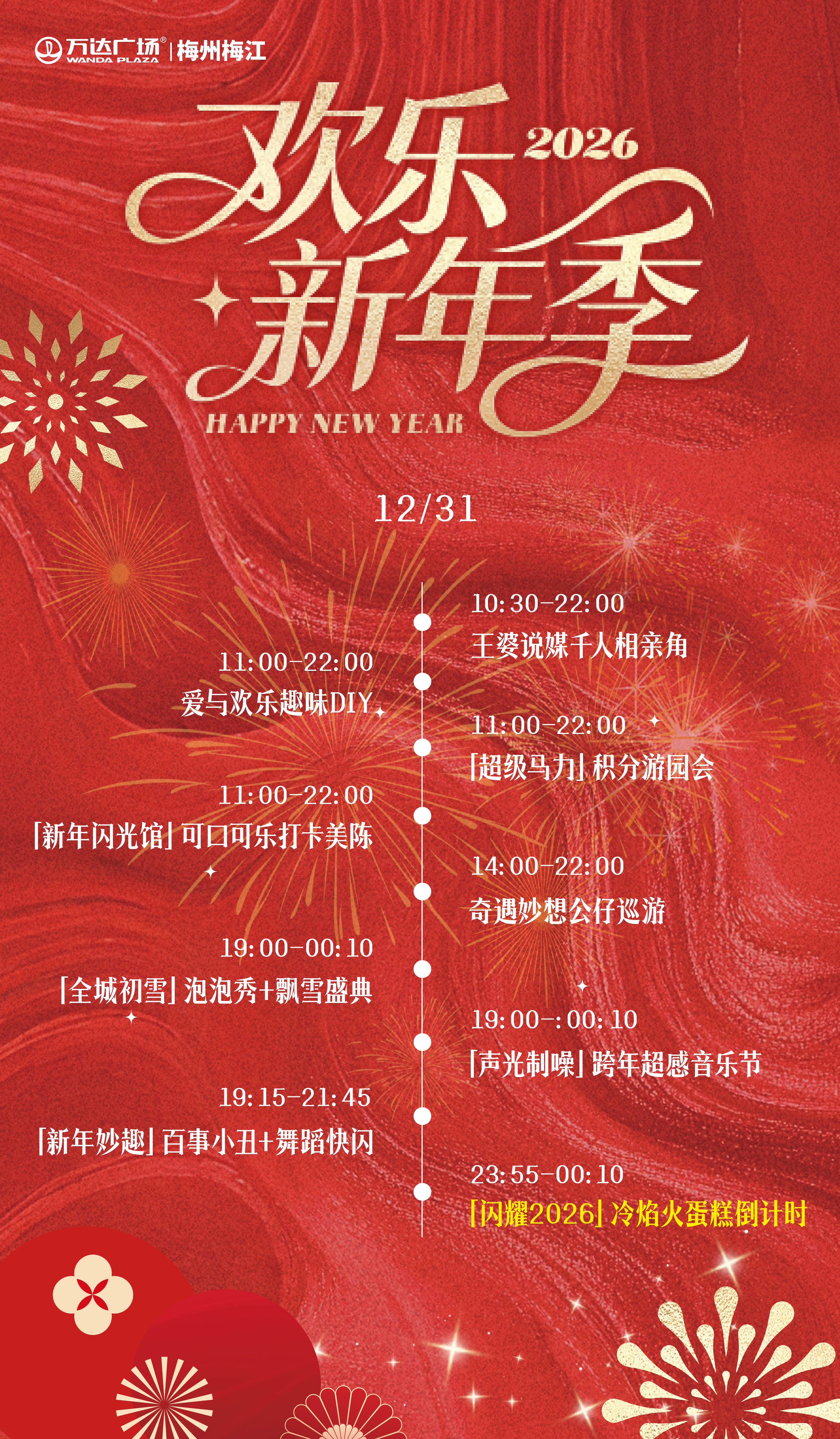 从12月31日至1月3日,每天都有精彩活动、超值优惠、暖心互动,梅州万达陪你一起告别2025,拥抱2026!