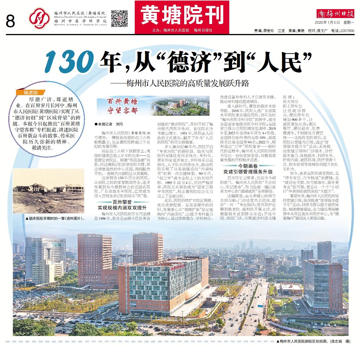厚德广济,尊道精业。在百卅岁月长河中,梅州市人民医院(黄塘医院)实现了从“德济初创”到“区域脊梁”的跨越。本报今日起推出“百卅黄塘 守望客都”专栏报道,讲述医院百卅载奋斗的故事,传承医院历久弥新的精神。敬请关注。