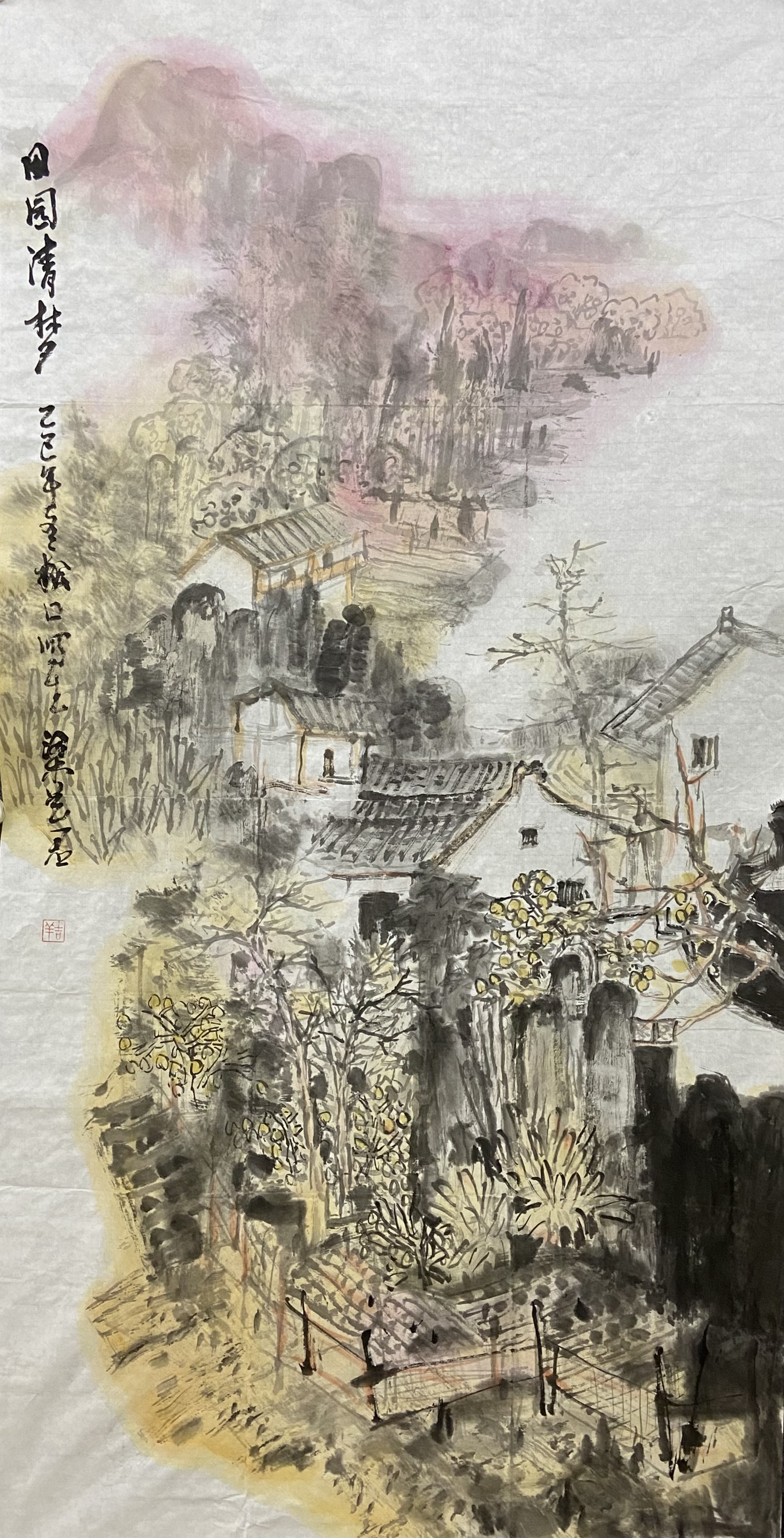 ▲梁艺君 《田园清梦》138x68cm
