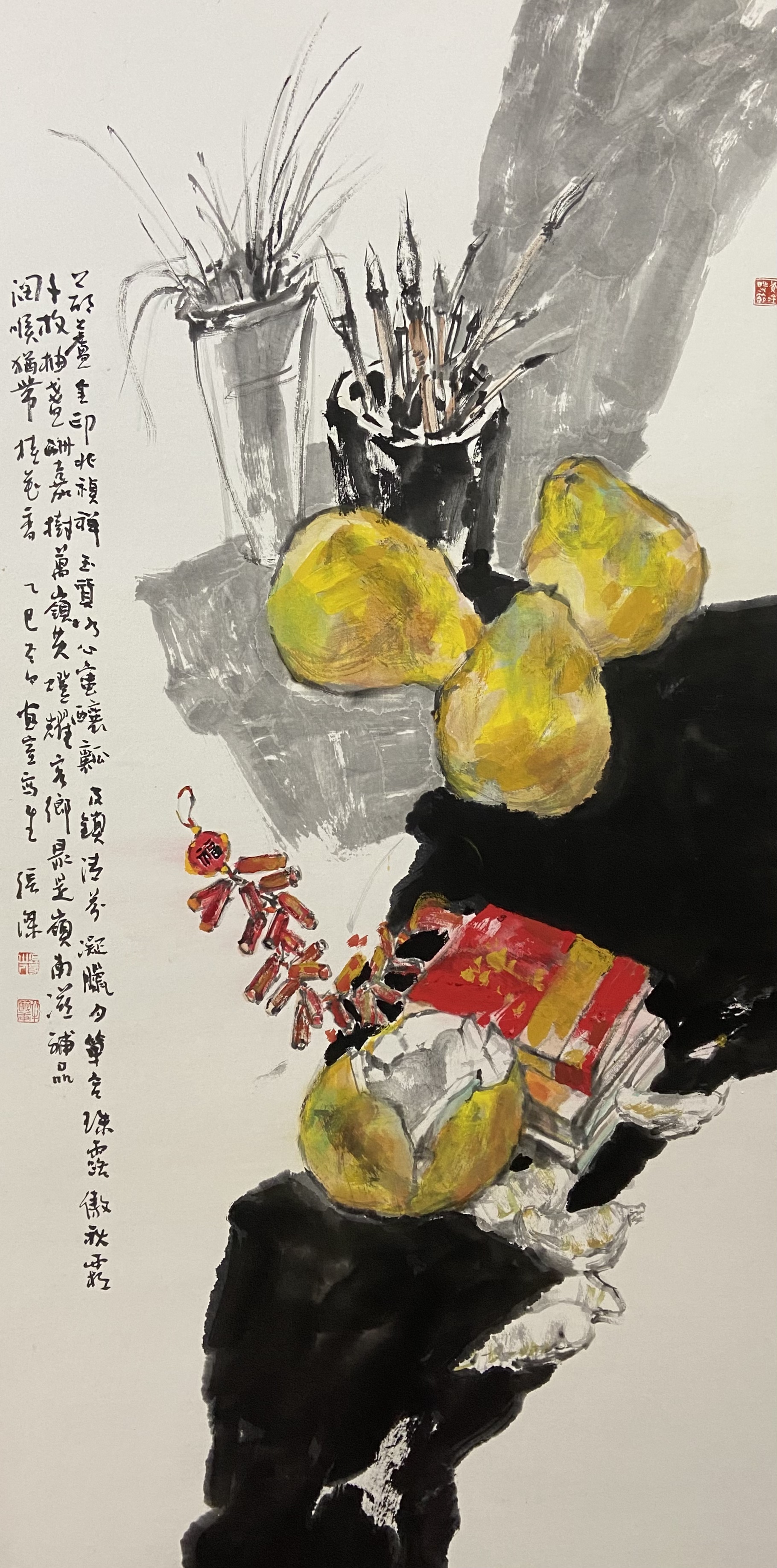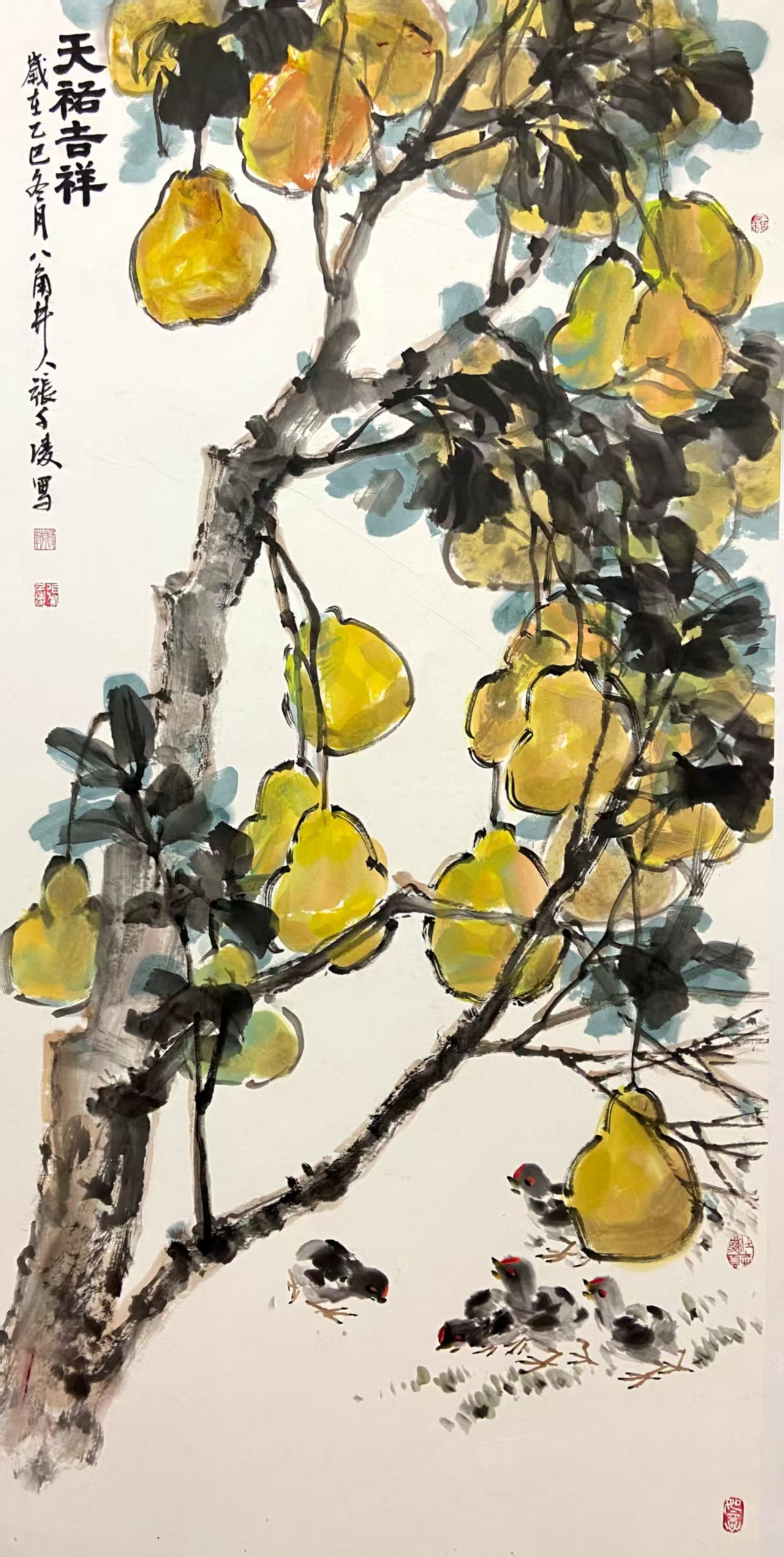 ▲张杰《柚香伴岁寒》 138x68cm