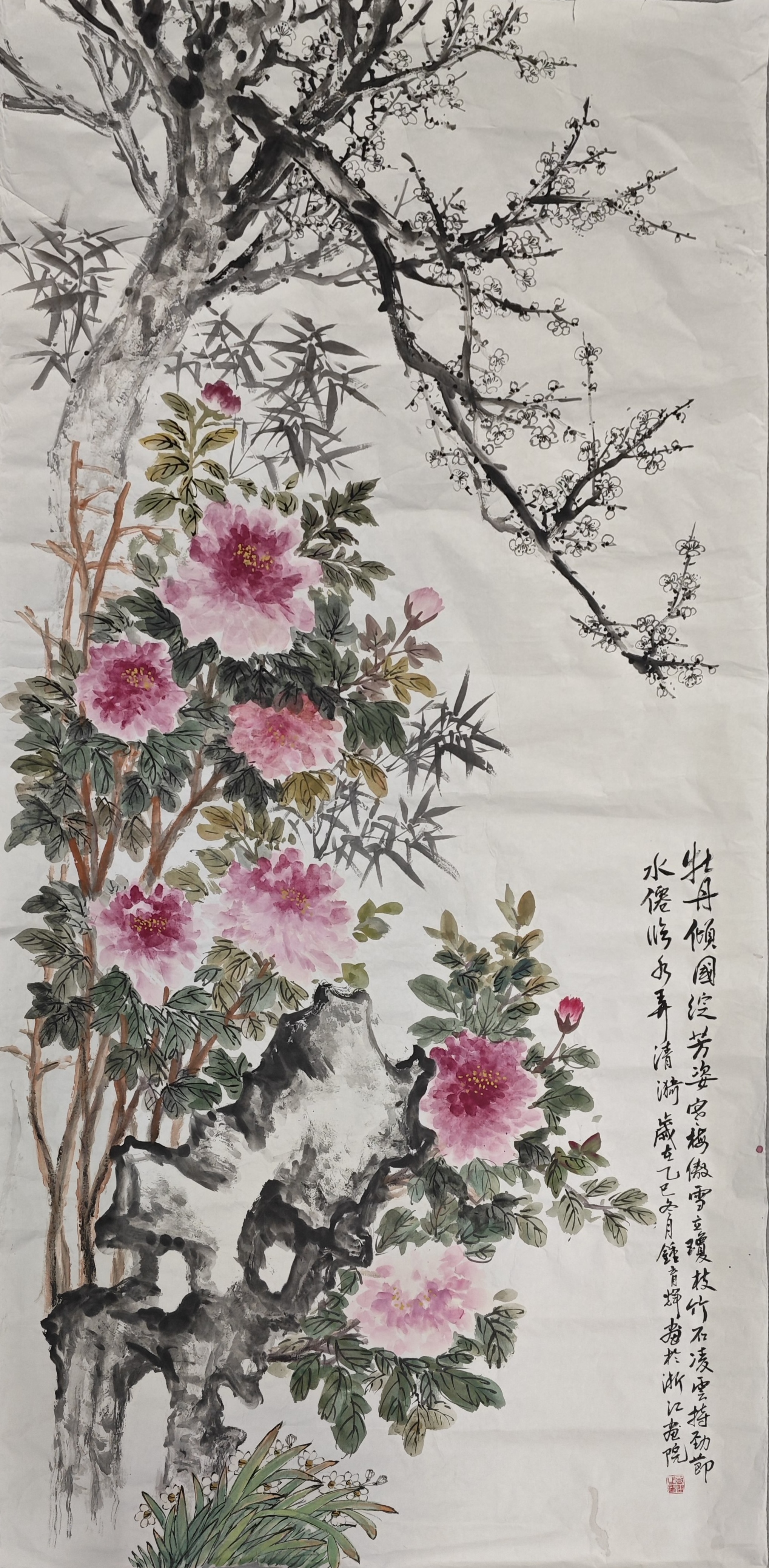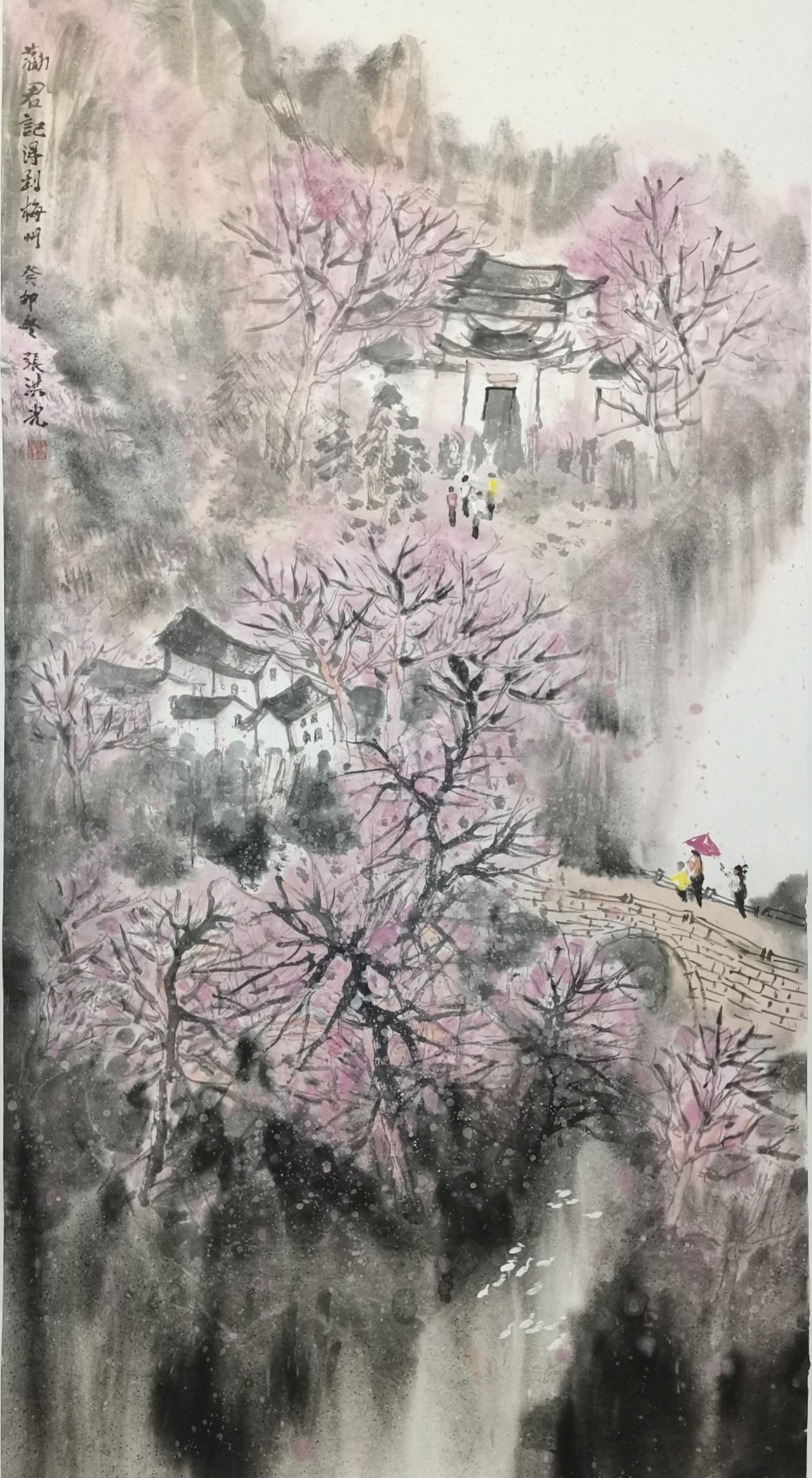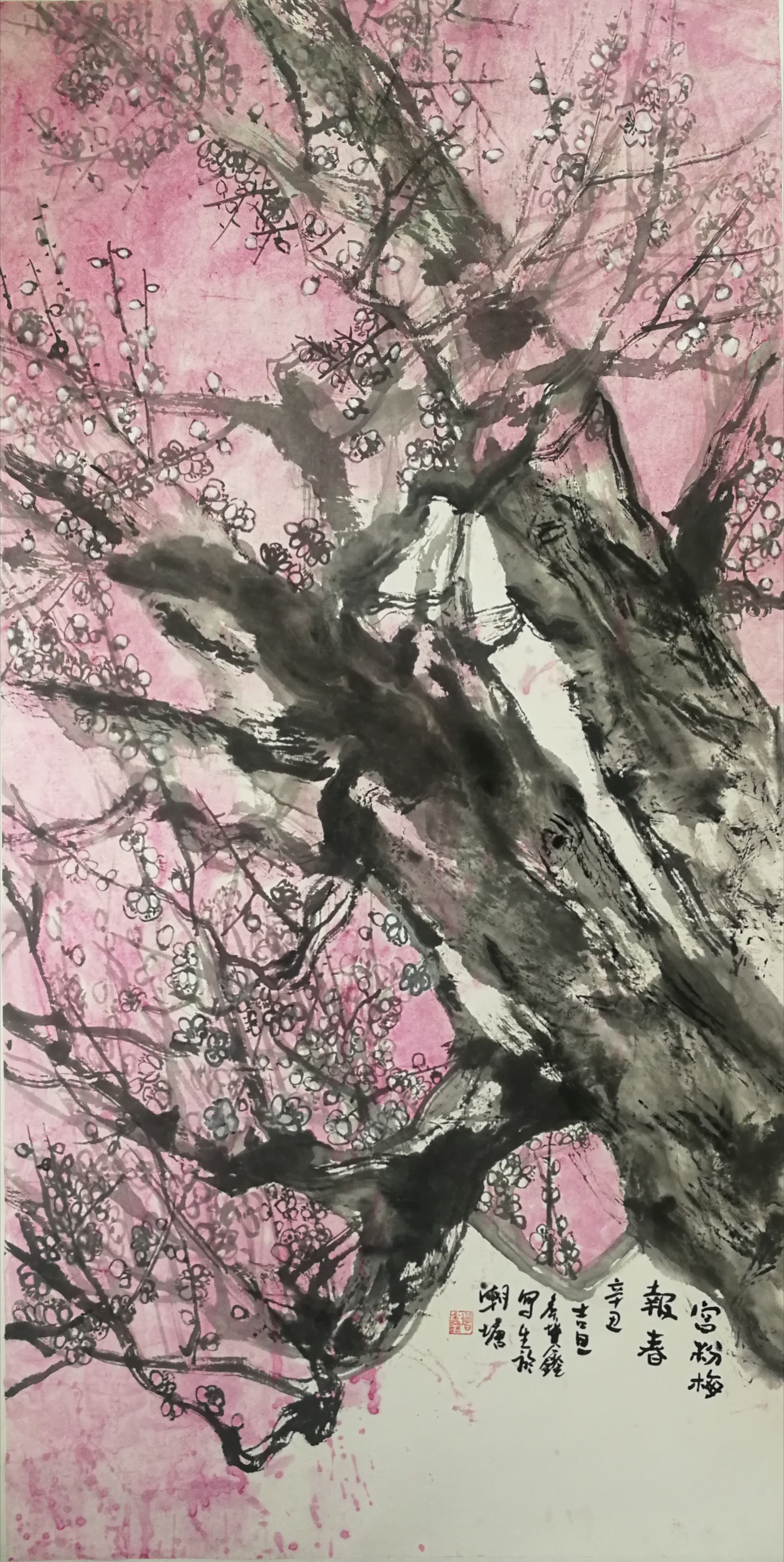 ▲侯增鑫《宫粉梅报春》 138x68cm