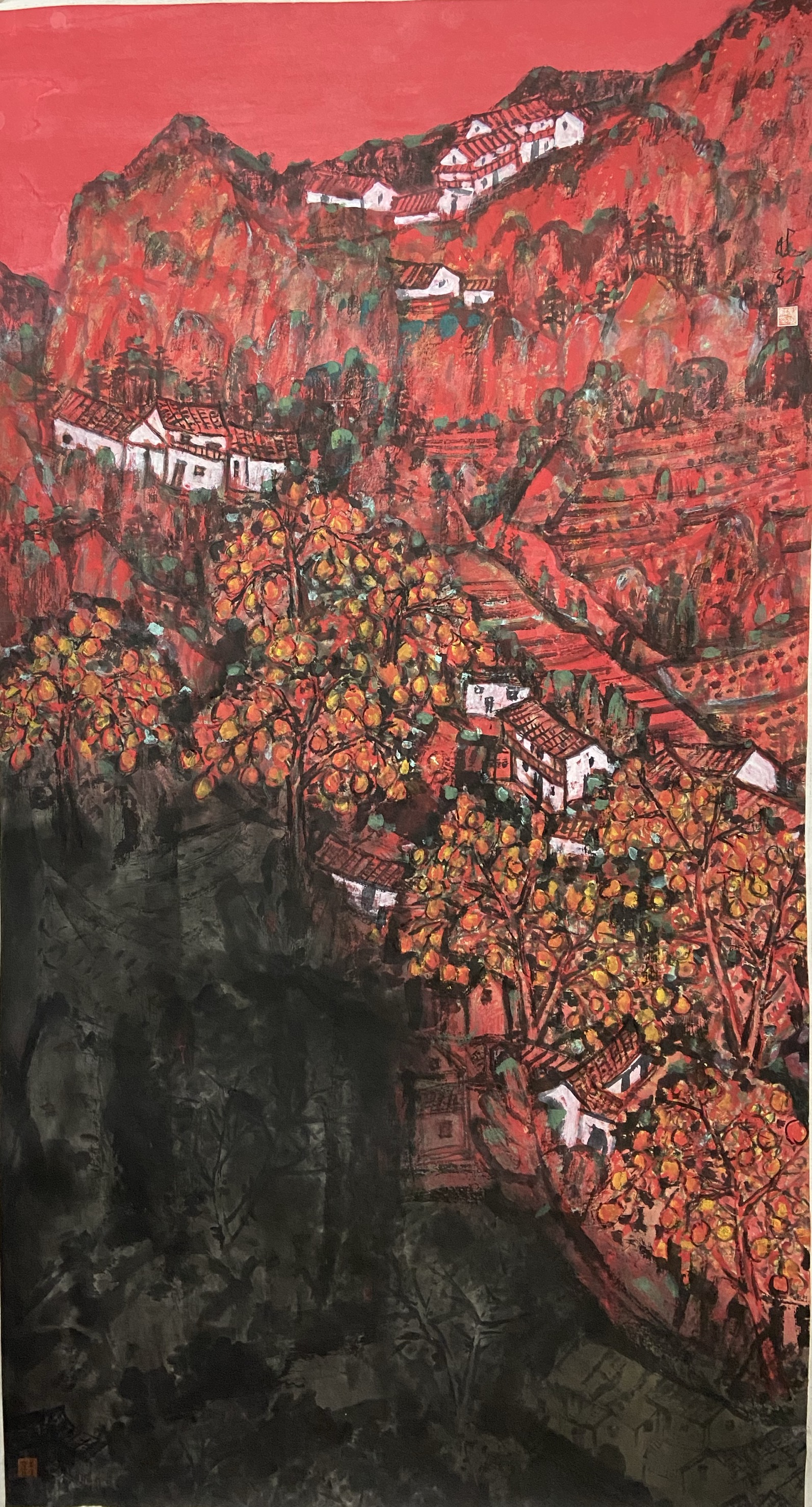 ▲刘晓红《采得霞光润瓤红》180x97cm